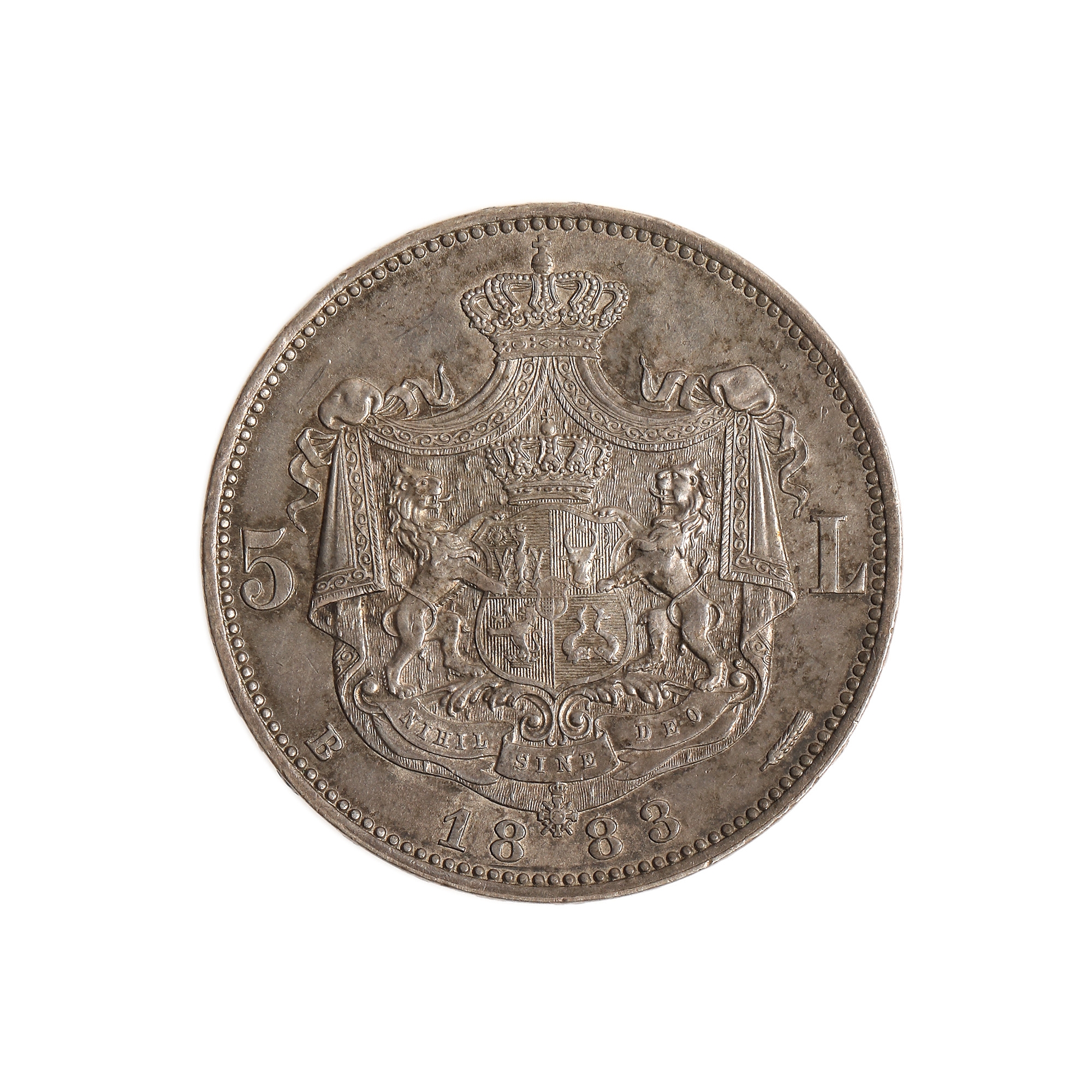 181. Monedă 5 lei 1883, Carol I, argint, stare de conservare de excepție, de colecție