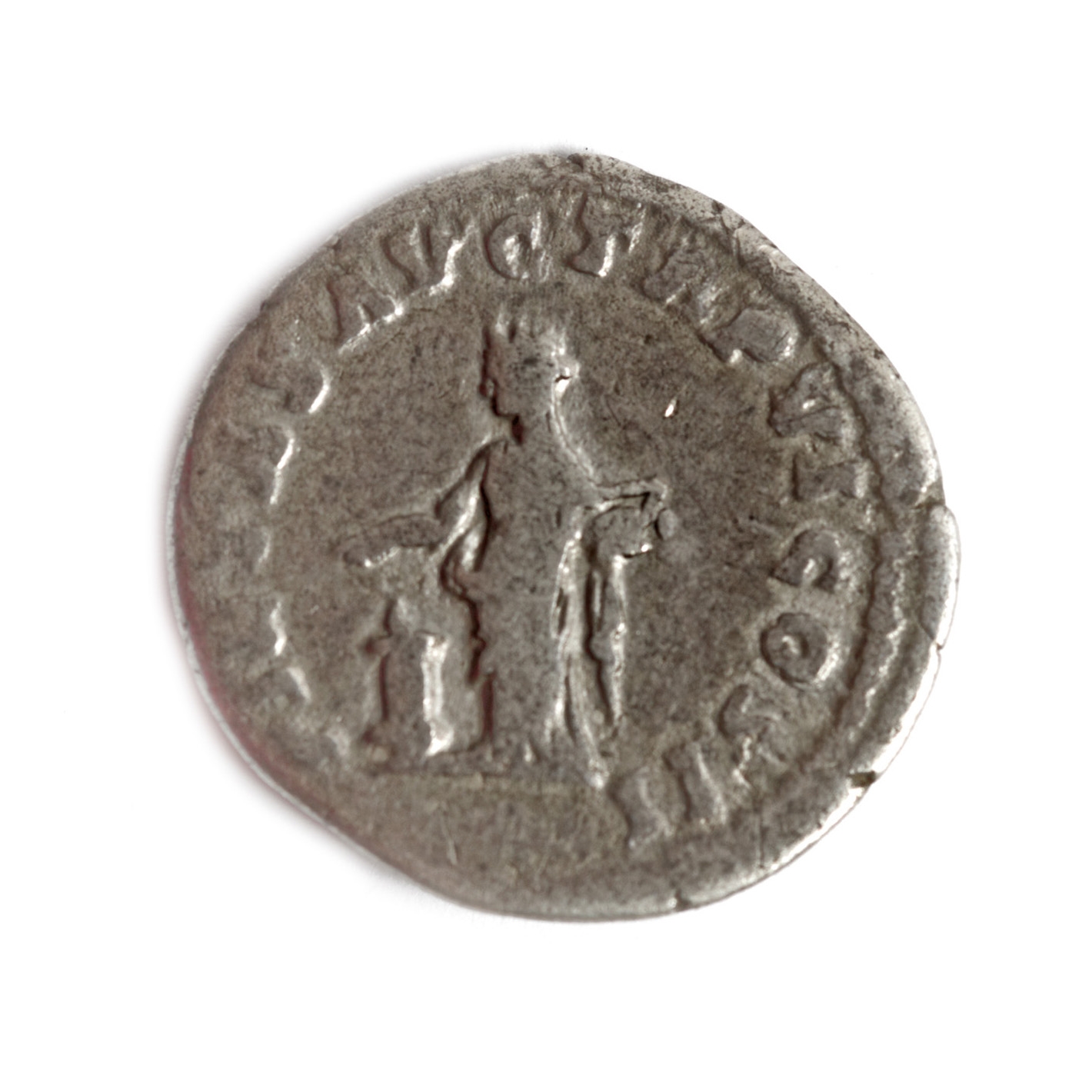 64C. Monedă Denarius, Lucius Verus (coîmpărat cu Marcus Aurelius), tip Pietas, 169 e.n., argint