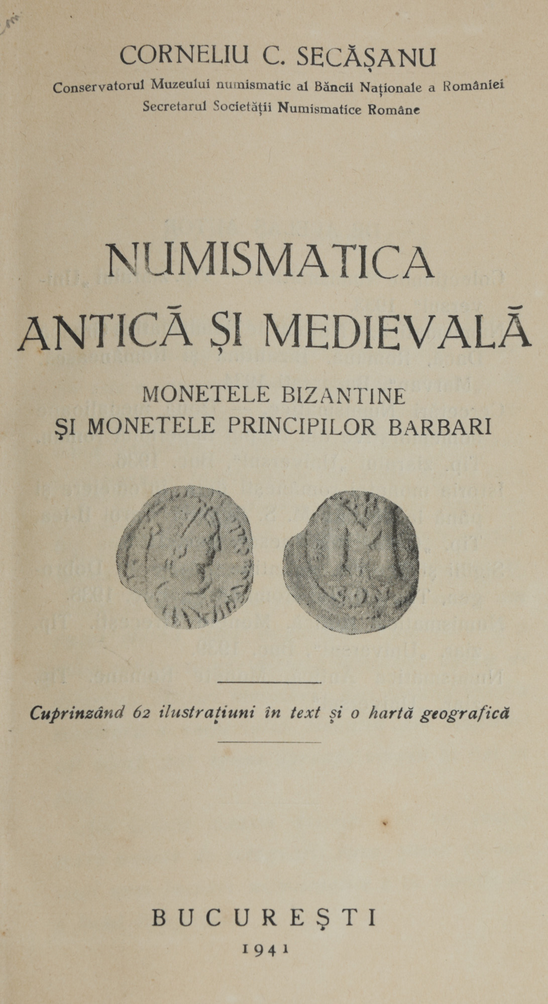 163. ”Numismatica Antică și Medievală - Monetele bizantine și monetele principilor barbari”, de Corneliu Secășanu, București, 1941