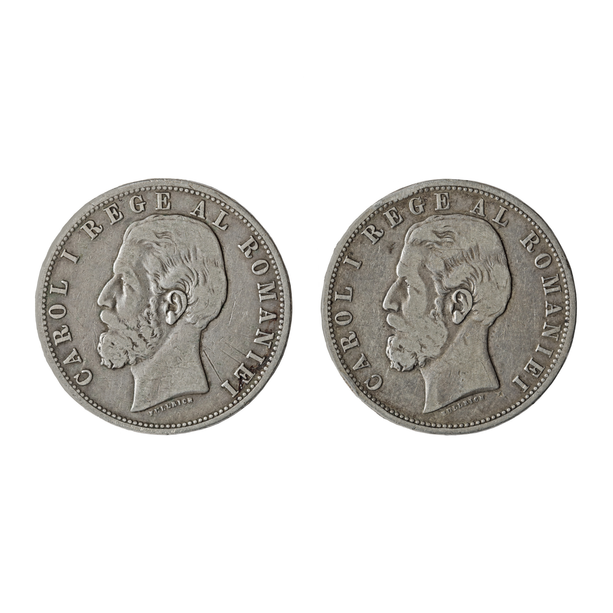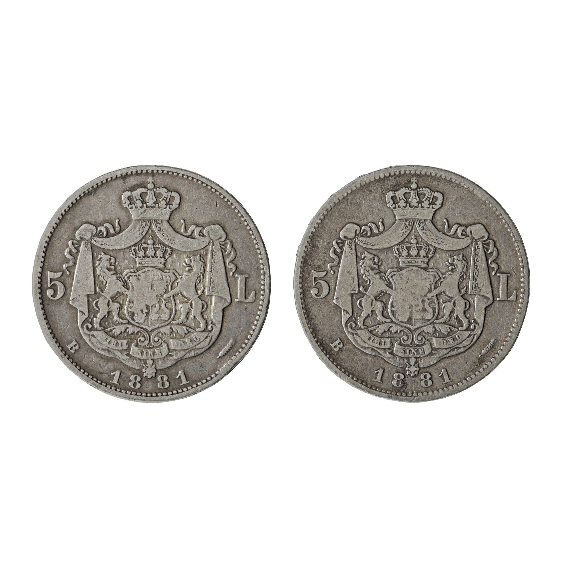 125. Pereche de monede de 5 Lei 1881, argint, cu 5 stele cu 5 raze
