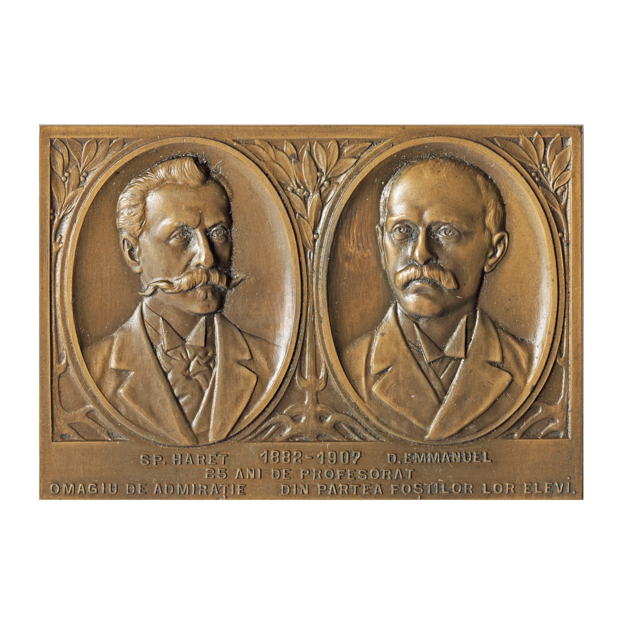 98. Placheta ”Spiru Haret și David Emmanuel - 25 de ani de profesorat”, 1907