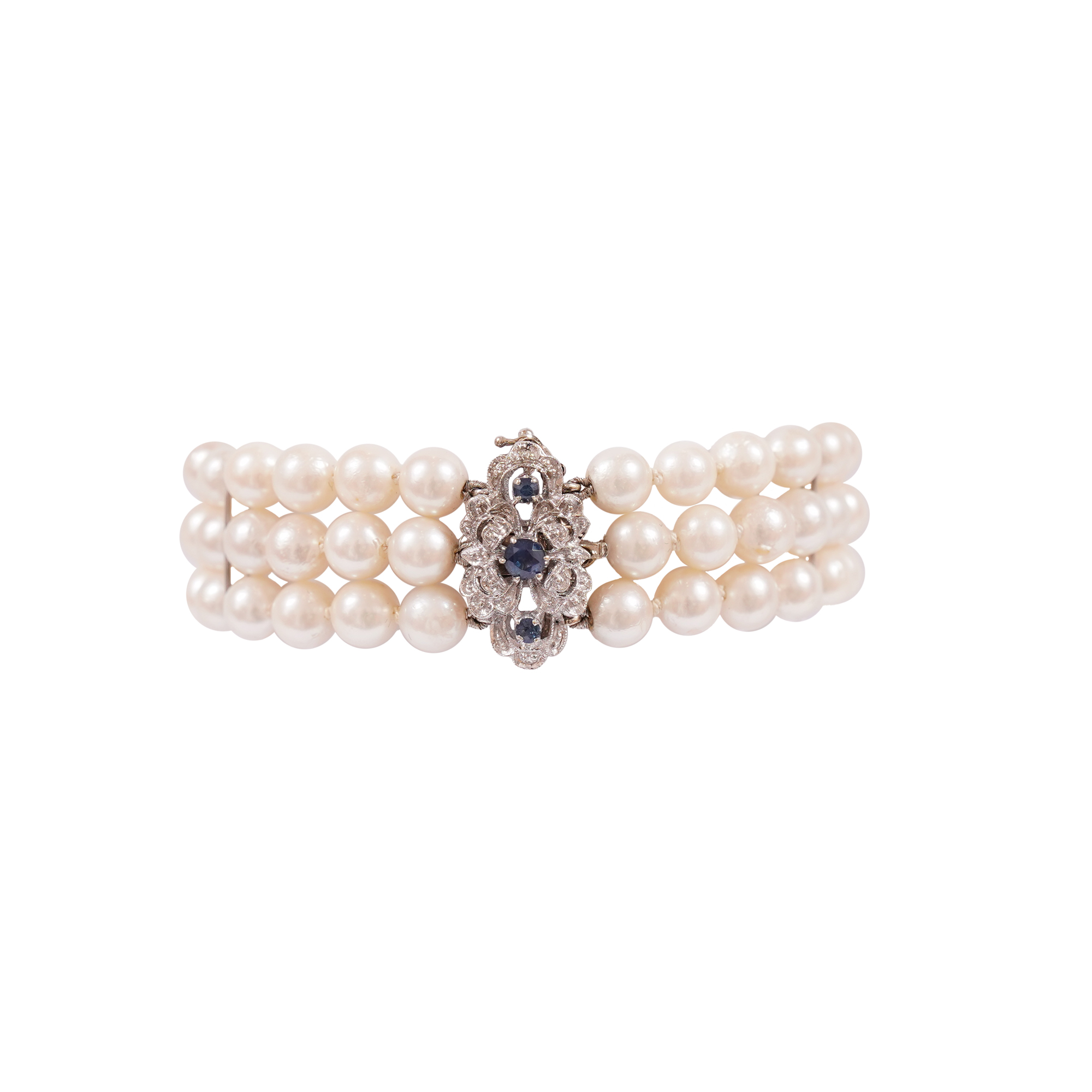 56. Akoya pearl bracelet with gold clasp and sapphires