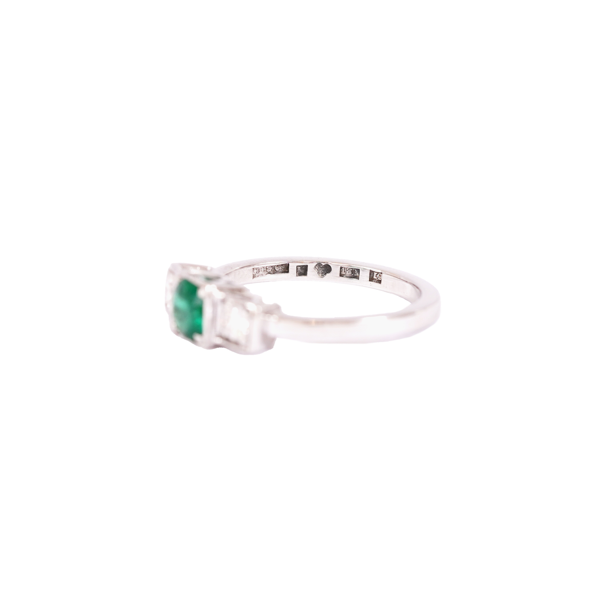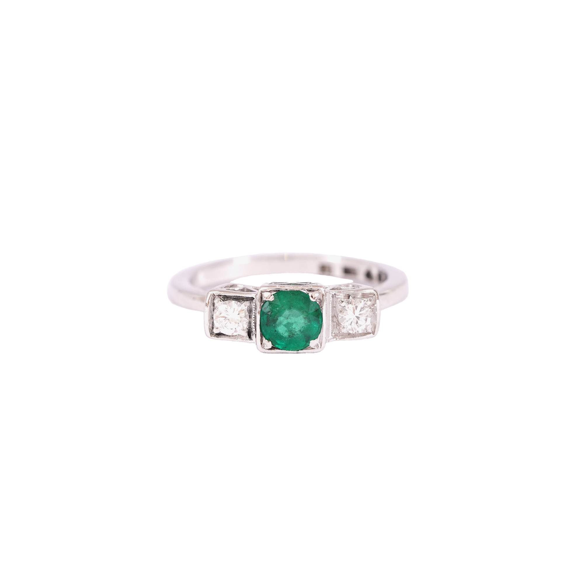 108. Art Deco style white gold ring decorated with emerald and diamonds