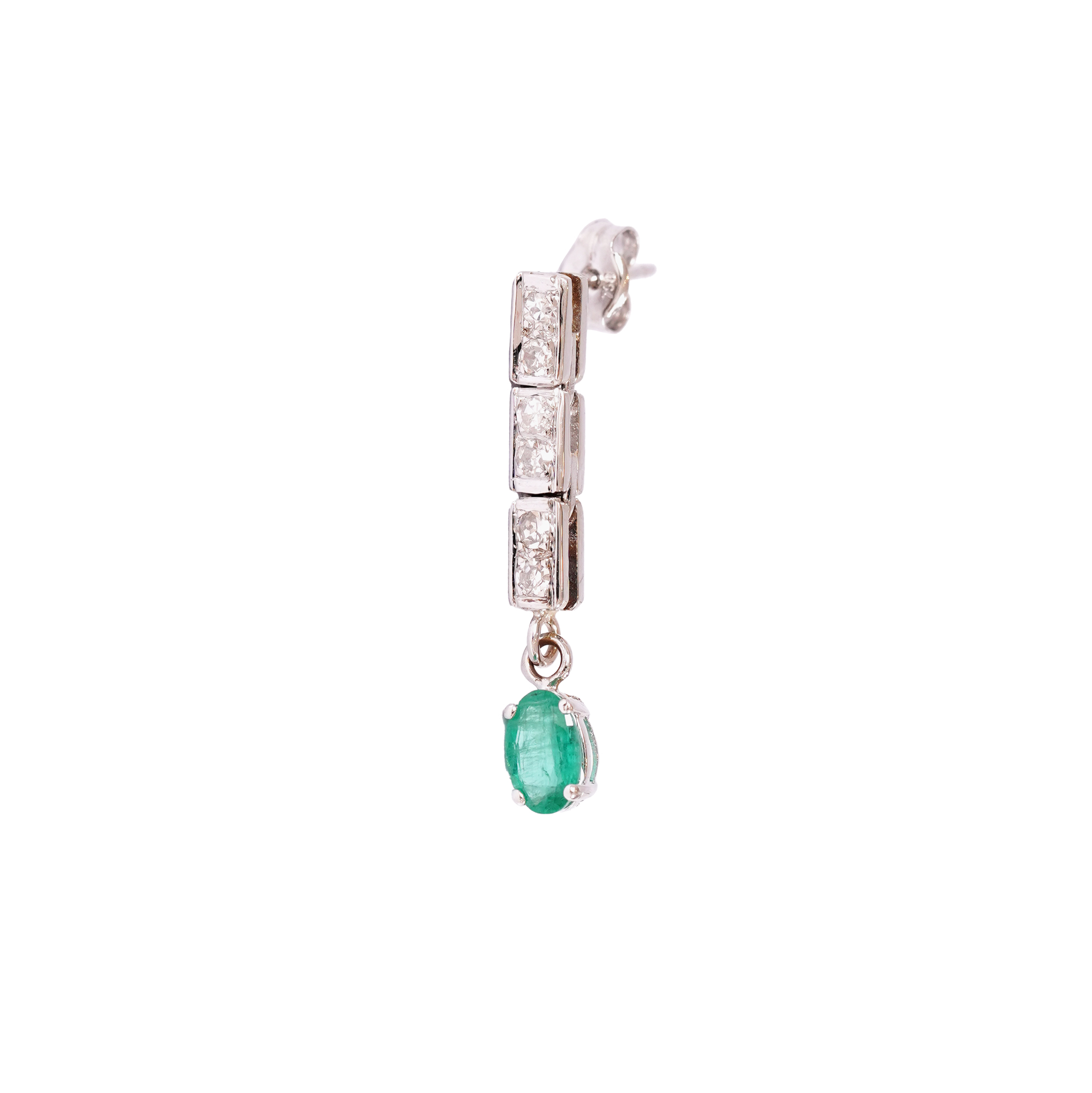 44. Earrings made of white gold, decorated with emeralds and diamonds