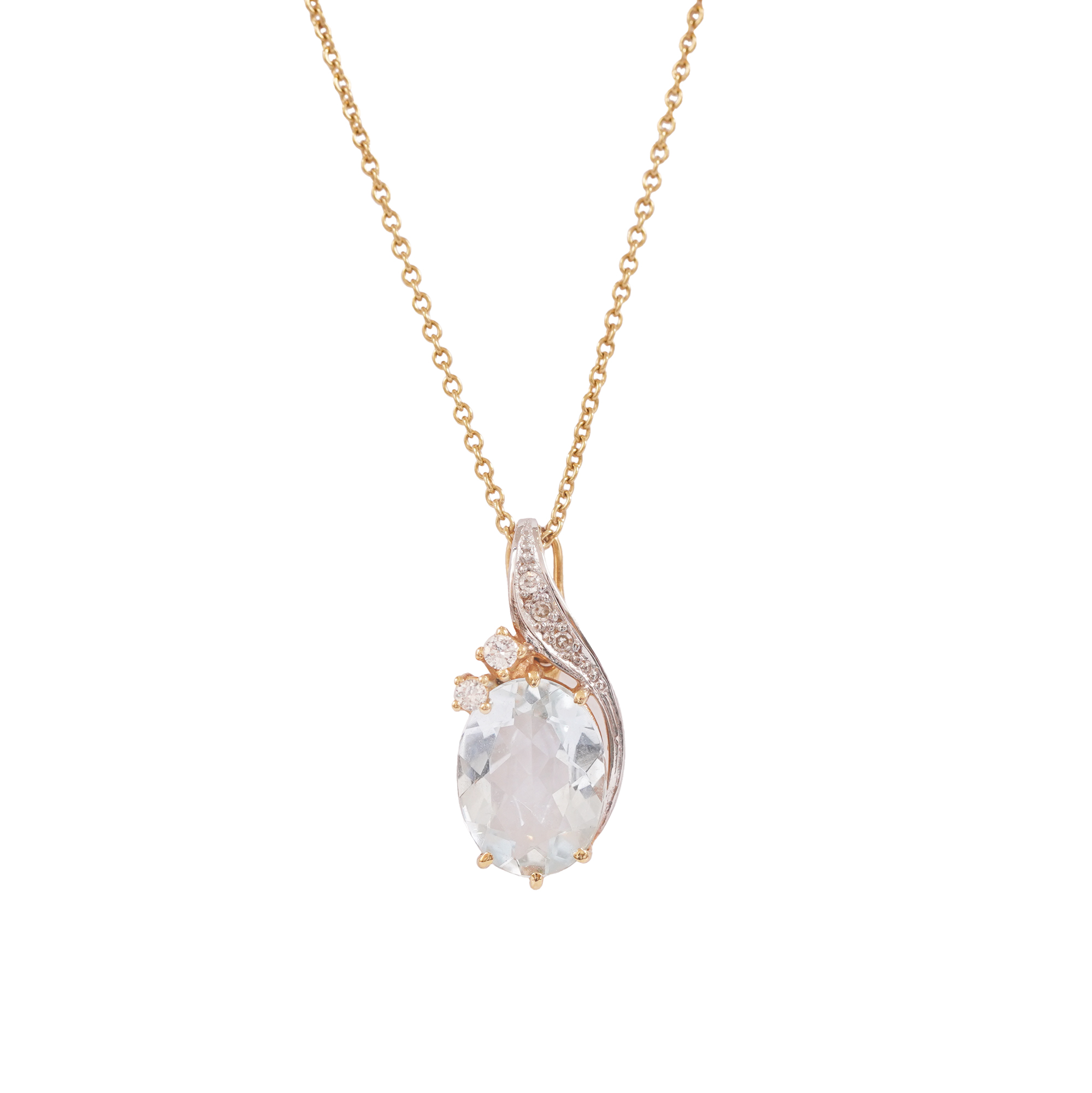 5 diamonds (3 single cut, 2 round brilliant cut), color M-I, clarity SI1-I1, approx. 0.08 ct.; 1 oval faceted aquamarine, light blue, flawless clarity, 2.76 ct.