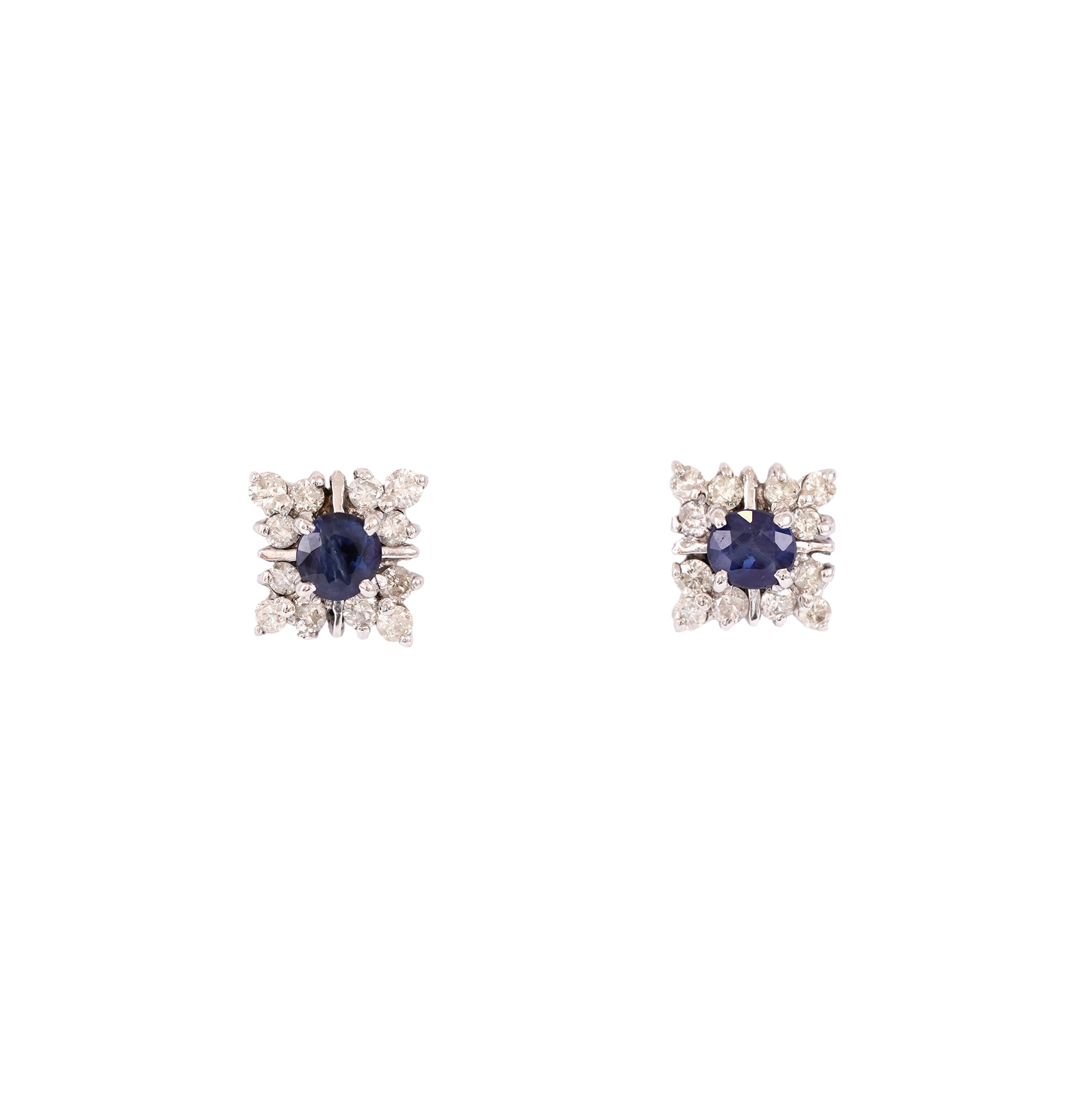 24 round brilliant cut diamonds, color I-L, clarity I1-I3, approx. 0.40 ct.; 2 round faceted sapphires, blue color, clarity with moderate inclusions, approx 0.60 ct.