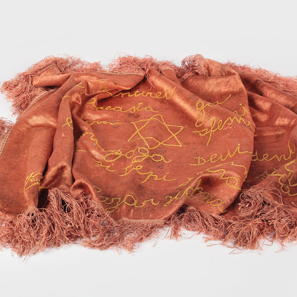 146. Cuvertură din mătase brodată, donație către o sinagogă, 1937