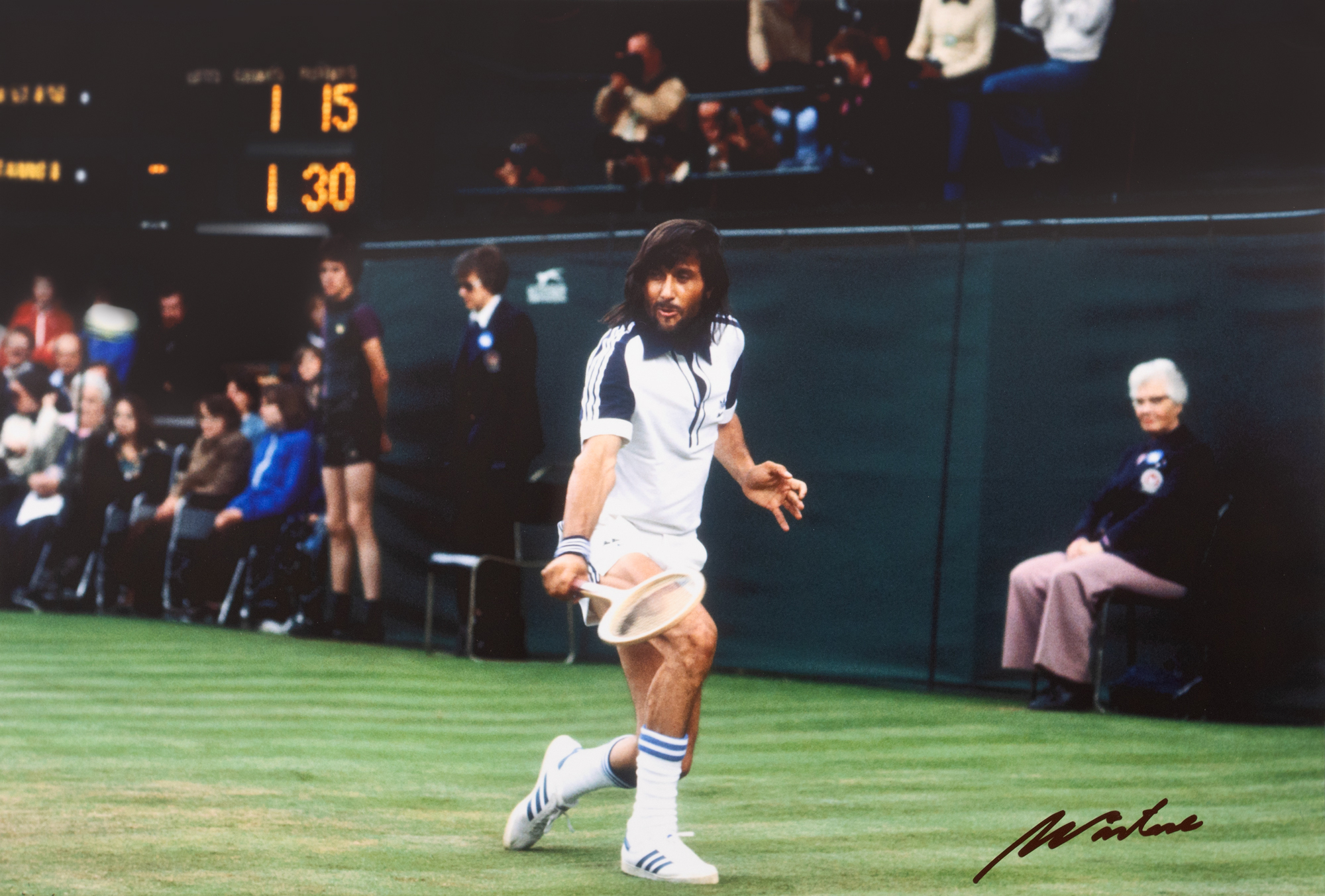 48. Fotografie reprezentându-l pe Ilie Năstase, la Wimbledon 1980, cu semnătura olografă a acestuia