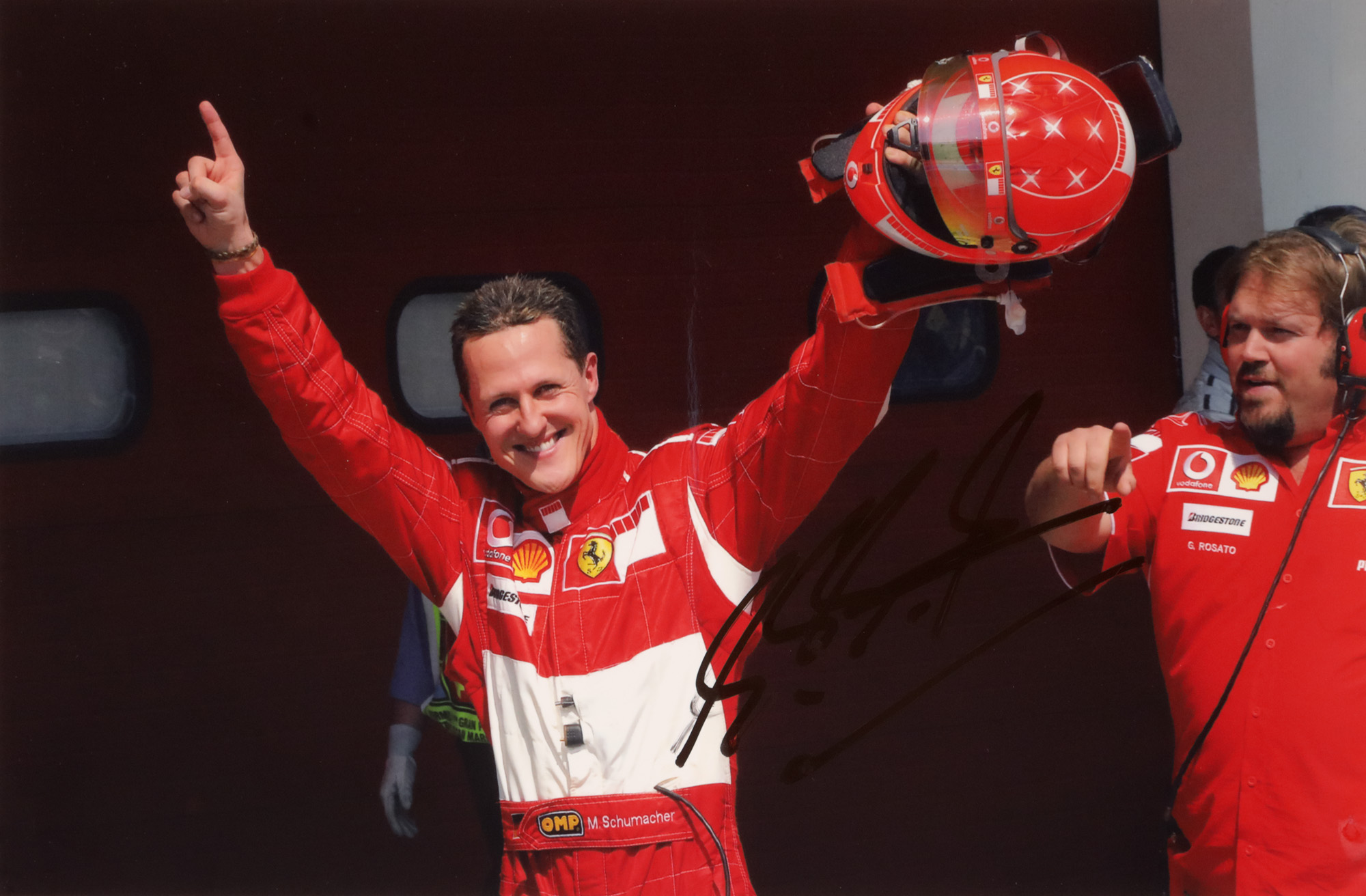 82. Fotografie reprezentându-l pe Michael Schumacher, cu semnătura olografă a acestuia [2004]