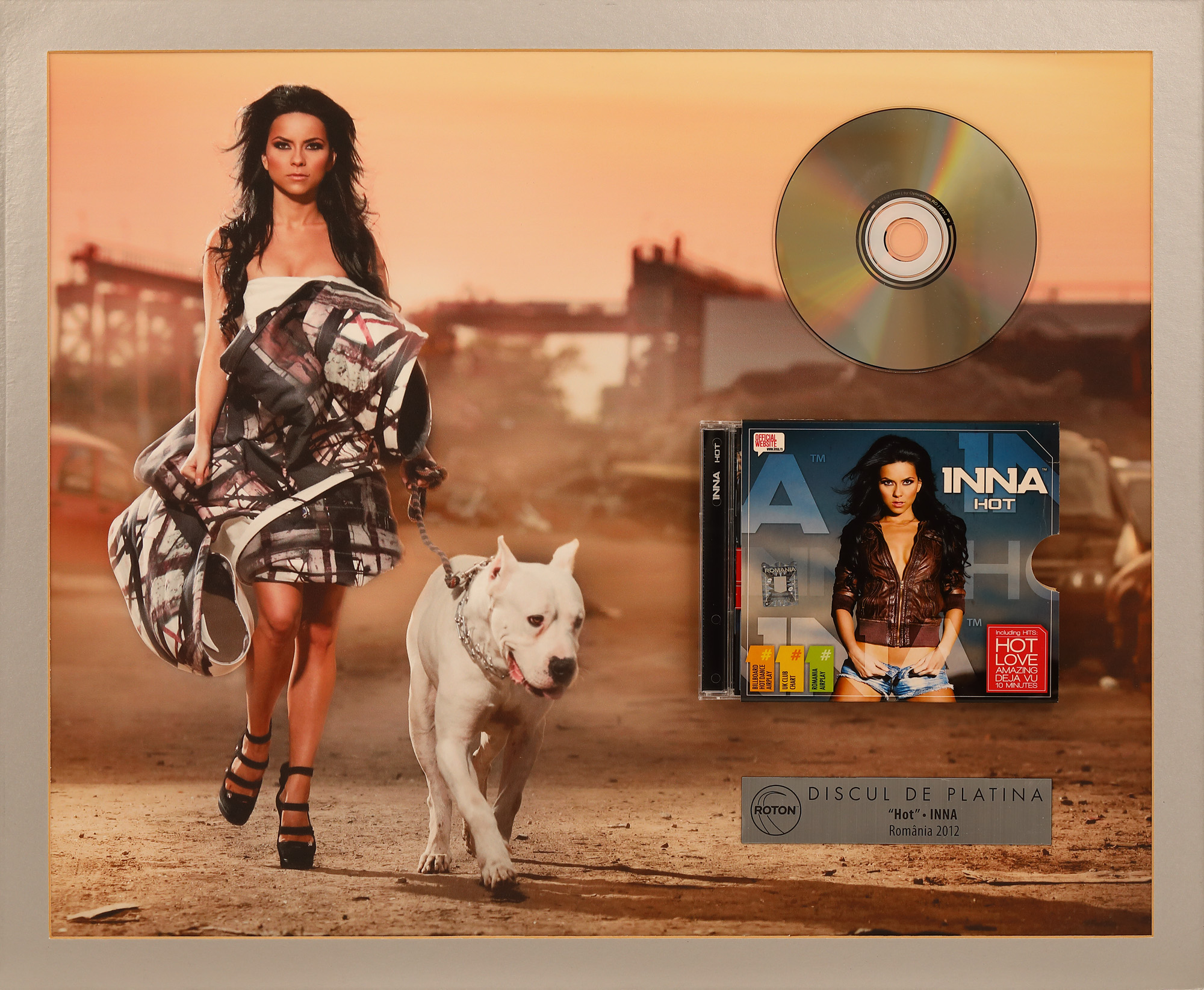 40. Lot excepțional constând în discul de platină acordat cântăreței INNA, pentru albumul "HOT", 2009, producător Radu Bolfea, alături de compunerea unei melodii unice pentru adjudecatar, de către compozitorul Radu Bolfea