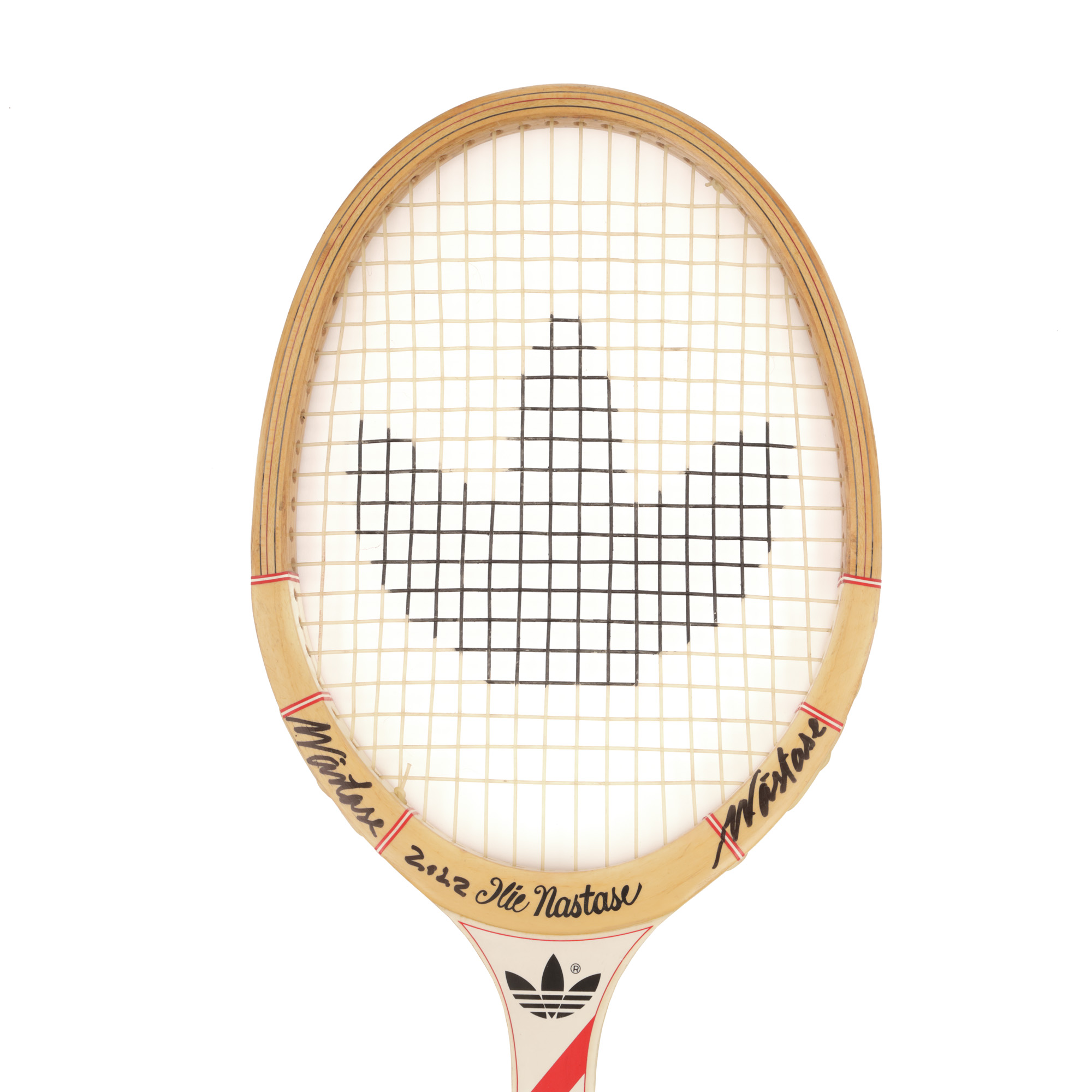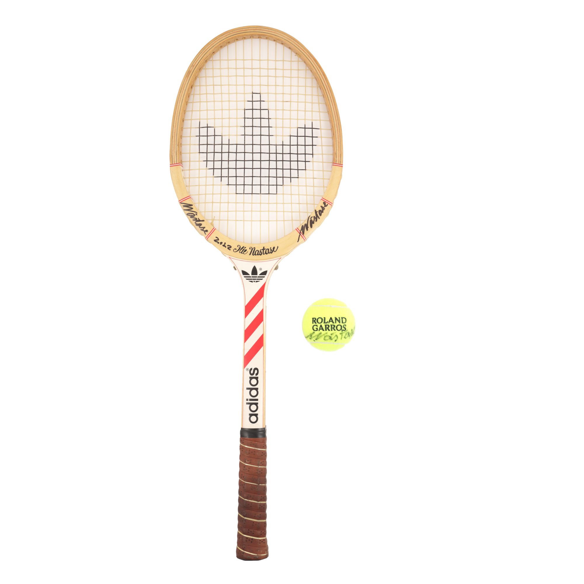 54. Lot format din o rachetă de tenis Adidas și o minge de tenis Roland Garros, ambele cu semnătura olografă a lui Ilie Năstase, 2012