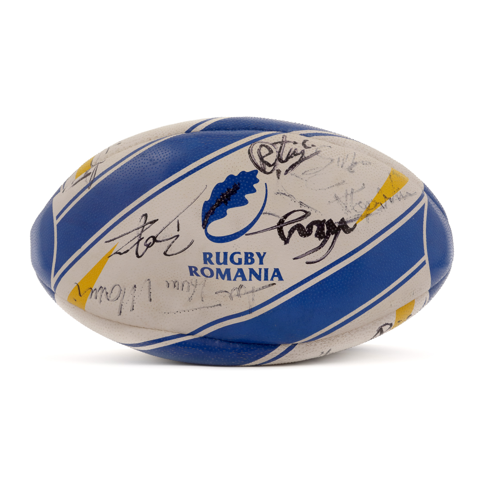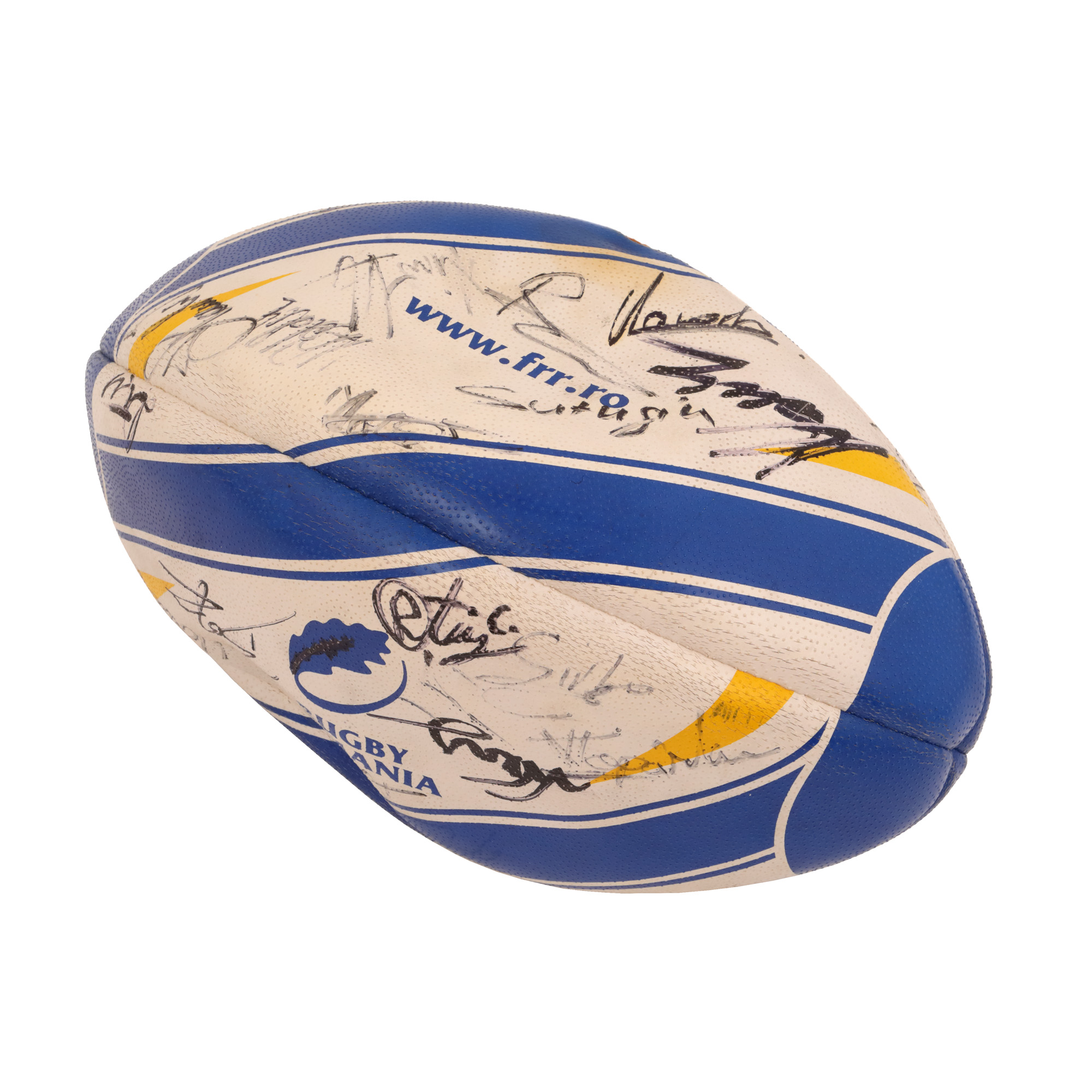 81. Minge de rugby, cu semnăturile olografe ale jucătorilor lotului echipei naționale de rugby a României, 2015
