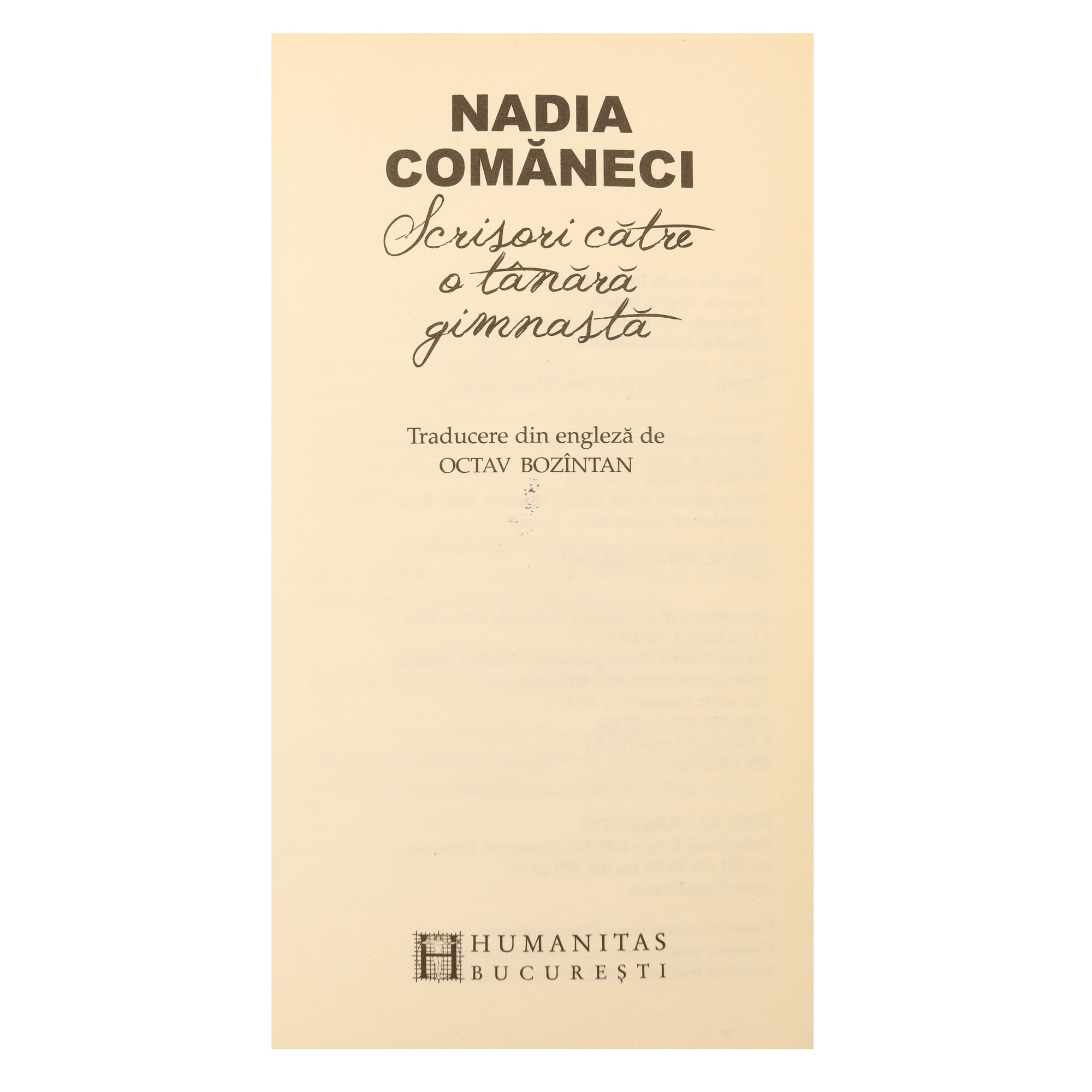 35. "Scrisori către o tânără gimnastă", de Nadia Comăneci, cu semnătura olografă a acesteia, 2012