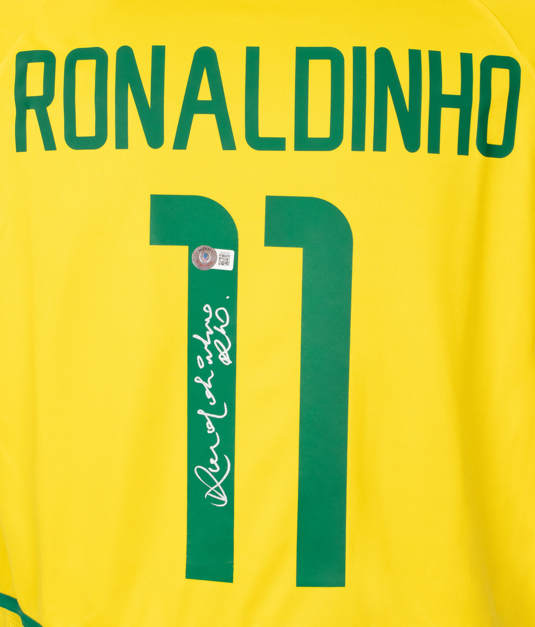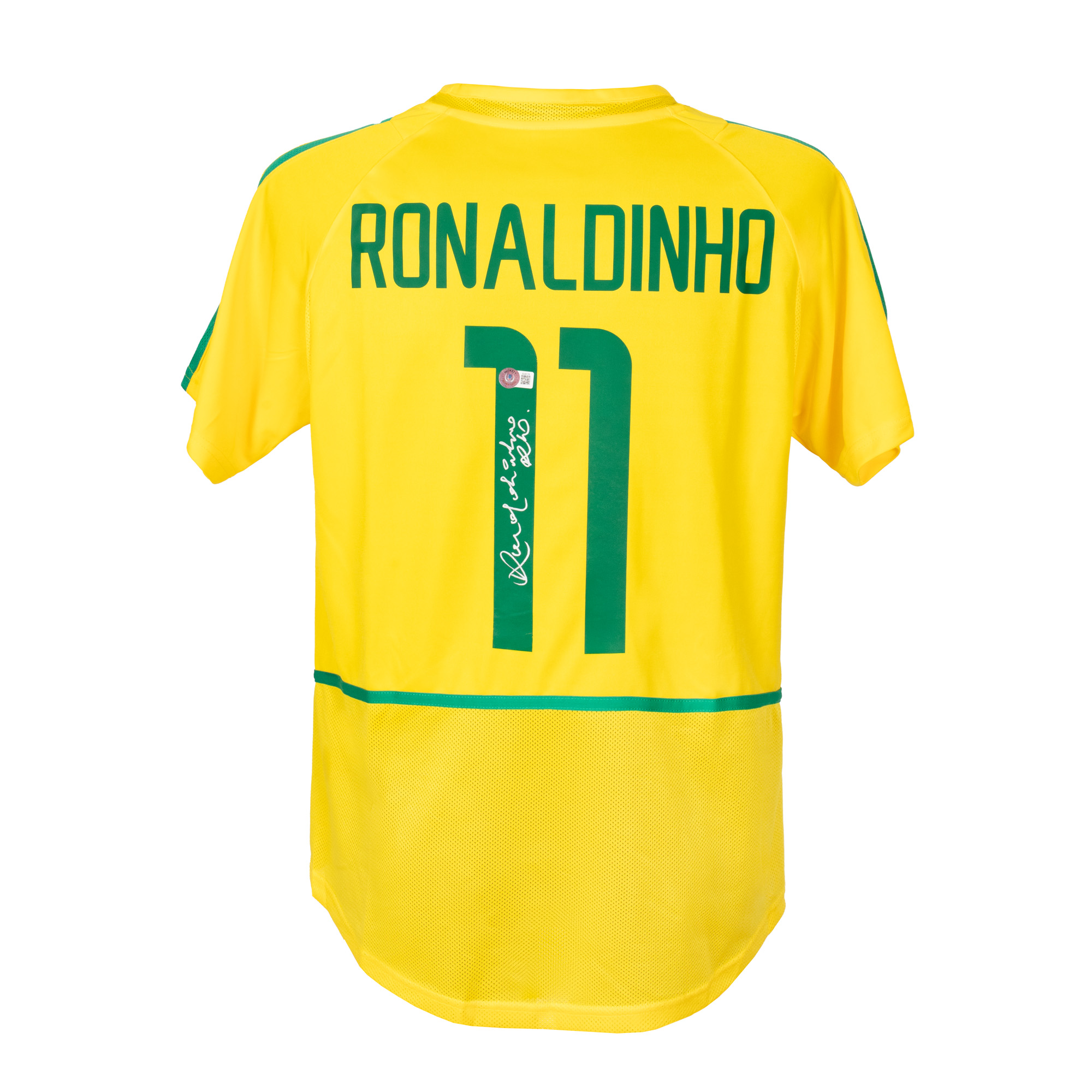 90. Tricou al echipei naționale a Braziliei, cu semnătura olografă a lui Ronaldinho (Ronaldo de Assis Moreira)