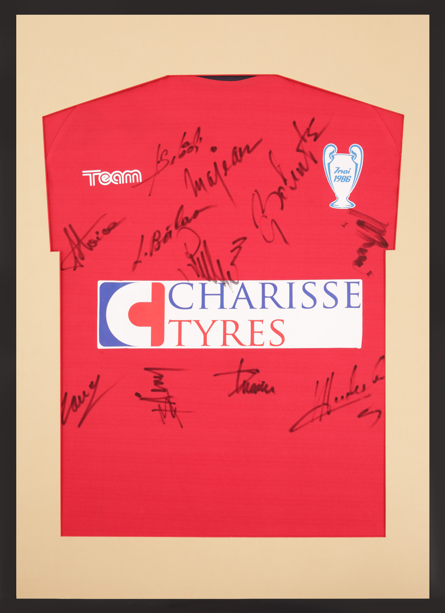 88. Tricou de colecție, ediție specială Sevilla 7 mai 1986, cu semnăturile olografe ale lui Gavrilă Balint, Mihail Majearu, Lucian Bălan