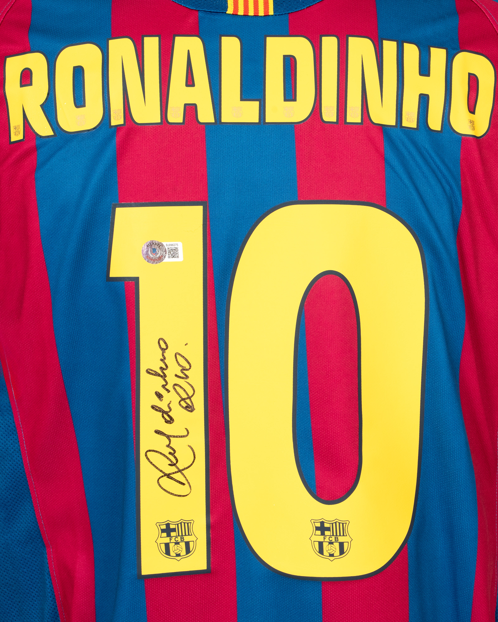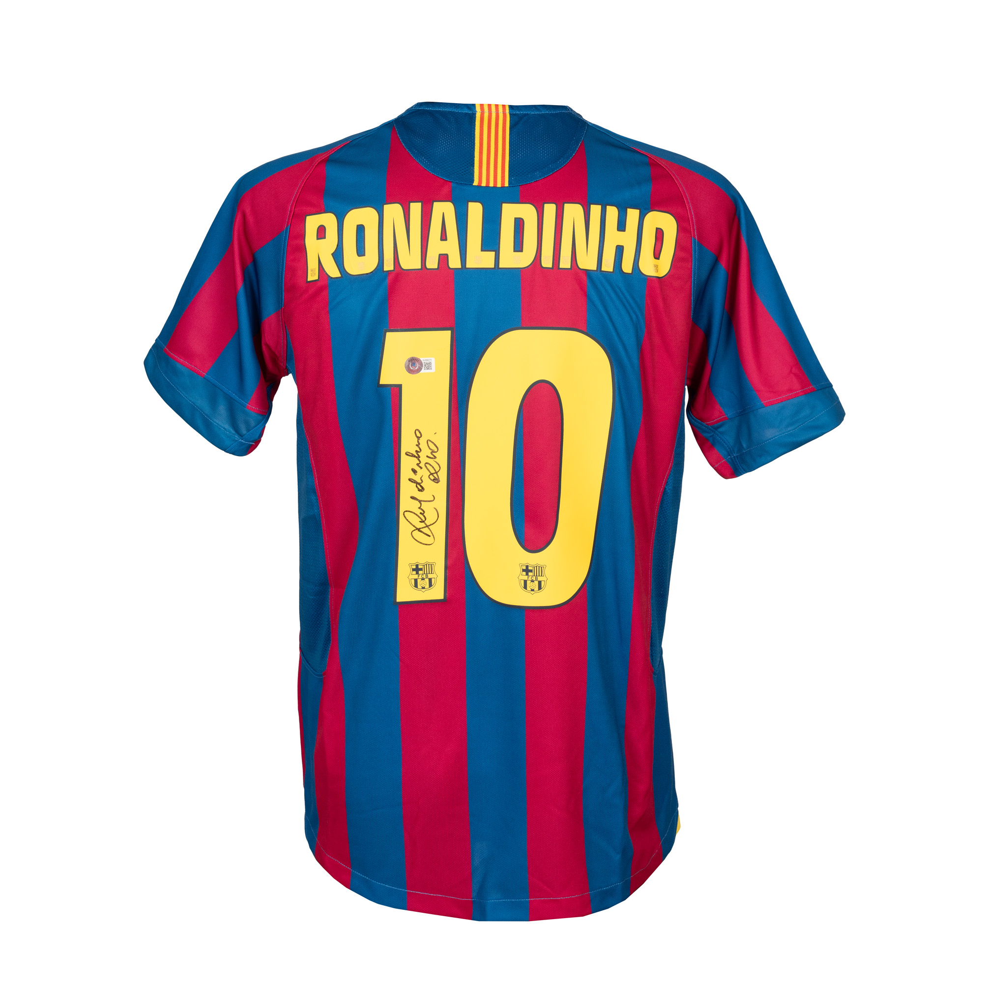 93. Tricou FC Barcelona, cu semnătura olografă a lui Ronaldinho (Ronaldo de Assis Moreira), supranumit "O Bruxo"
