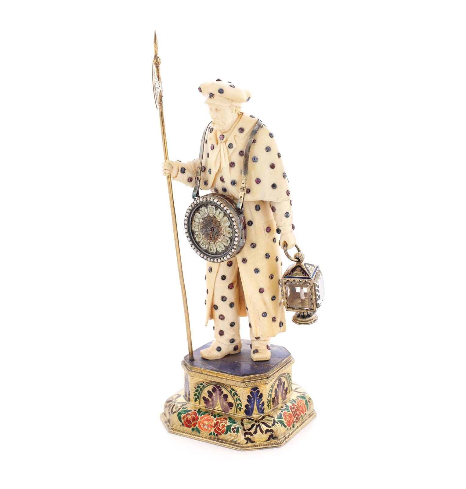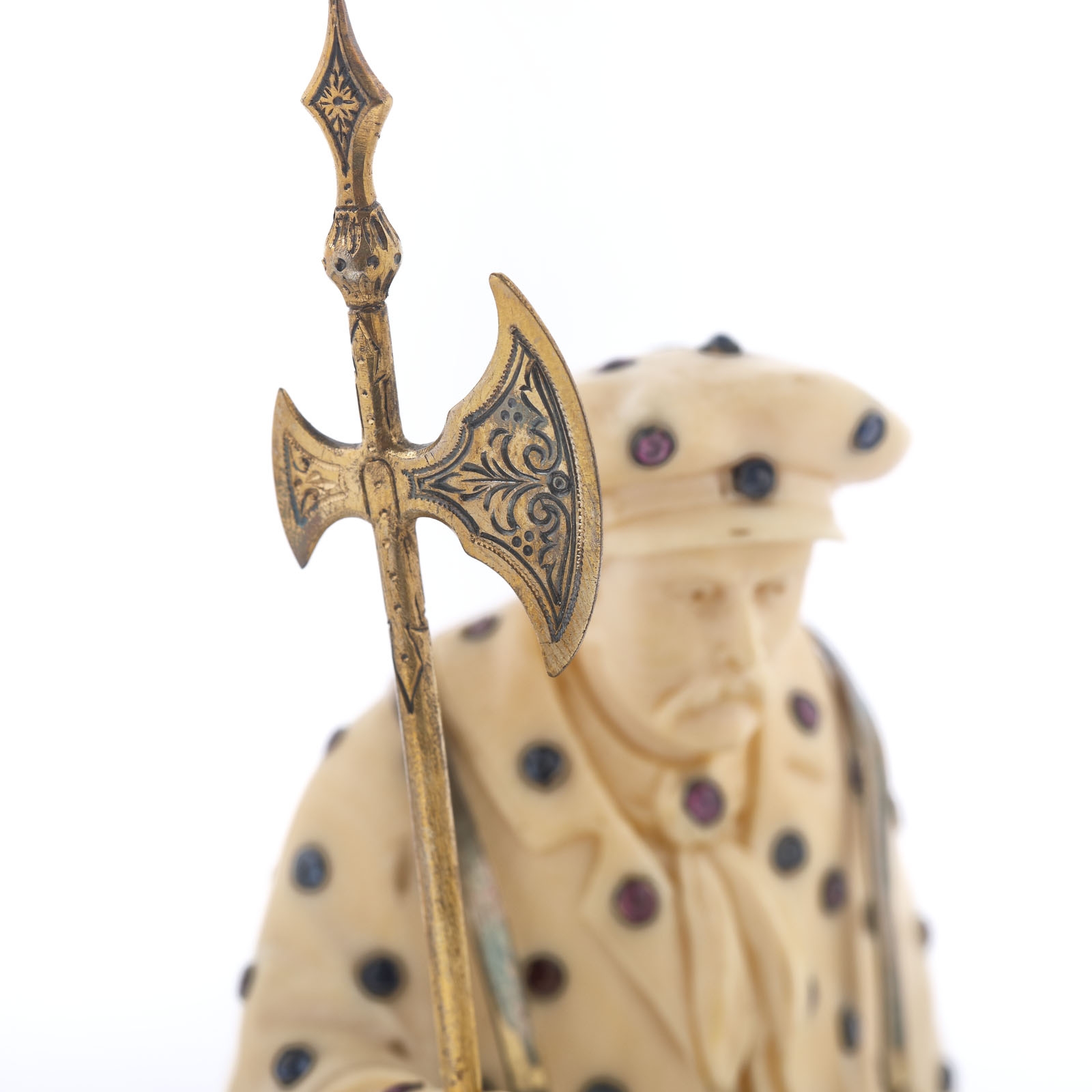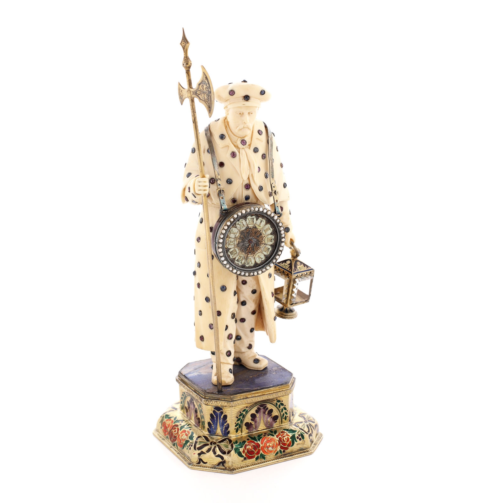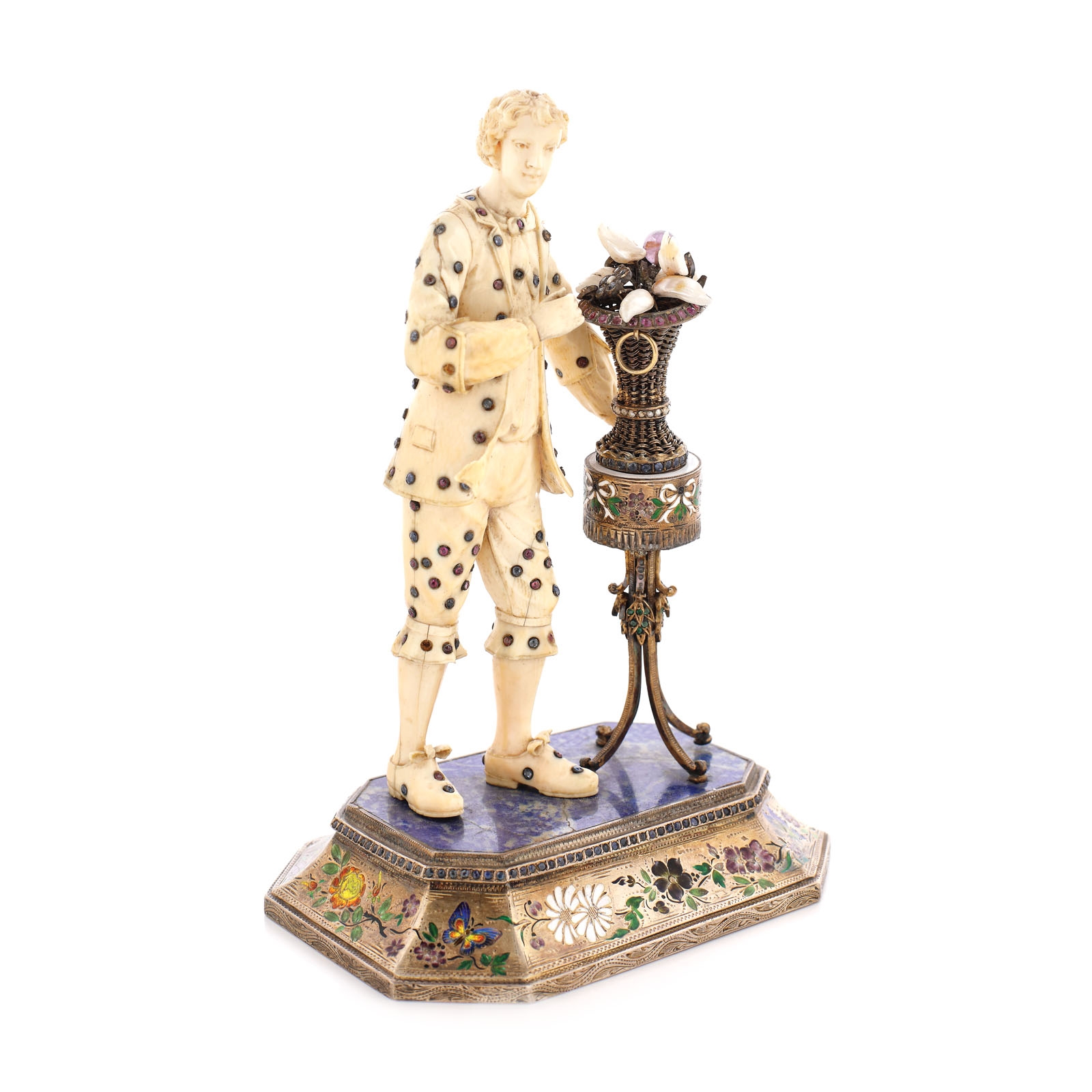 62. Statuete din fildeș, ornate cu safire, rubine, smaralde, ametiste și perle de cultură, sfârșitul sec. XIX, piese de colecție