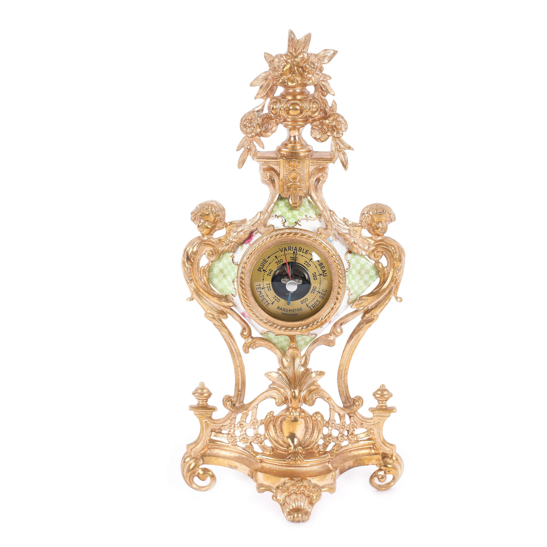 182. Barometru realizat în manieră Neo-Rococo, din bronz doré și porțelan pictat, cca. 1915