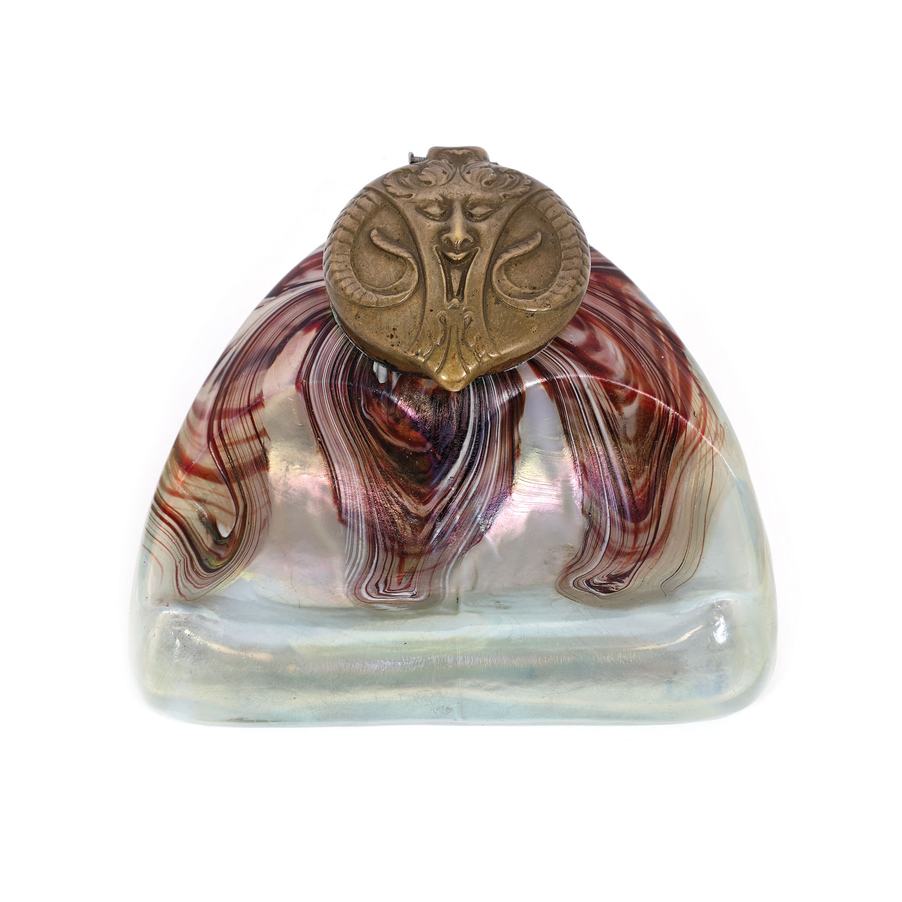 174. Călimară Kralik iridiscentă, în stil Art Nouveau, decorată cu cap de satir, cca. 1900