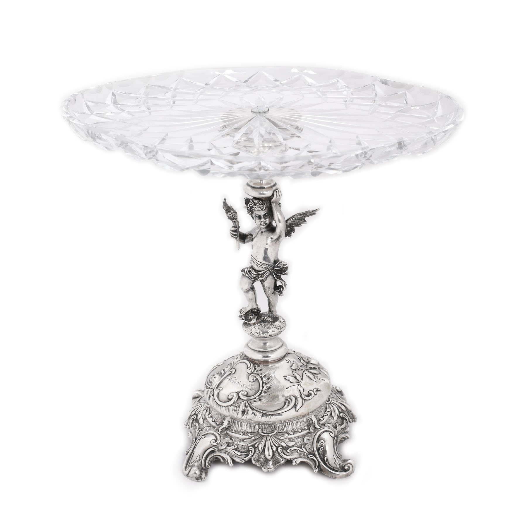 228. Centru de masă din argint și cristal, decorat cu un putti, cca. 1890