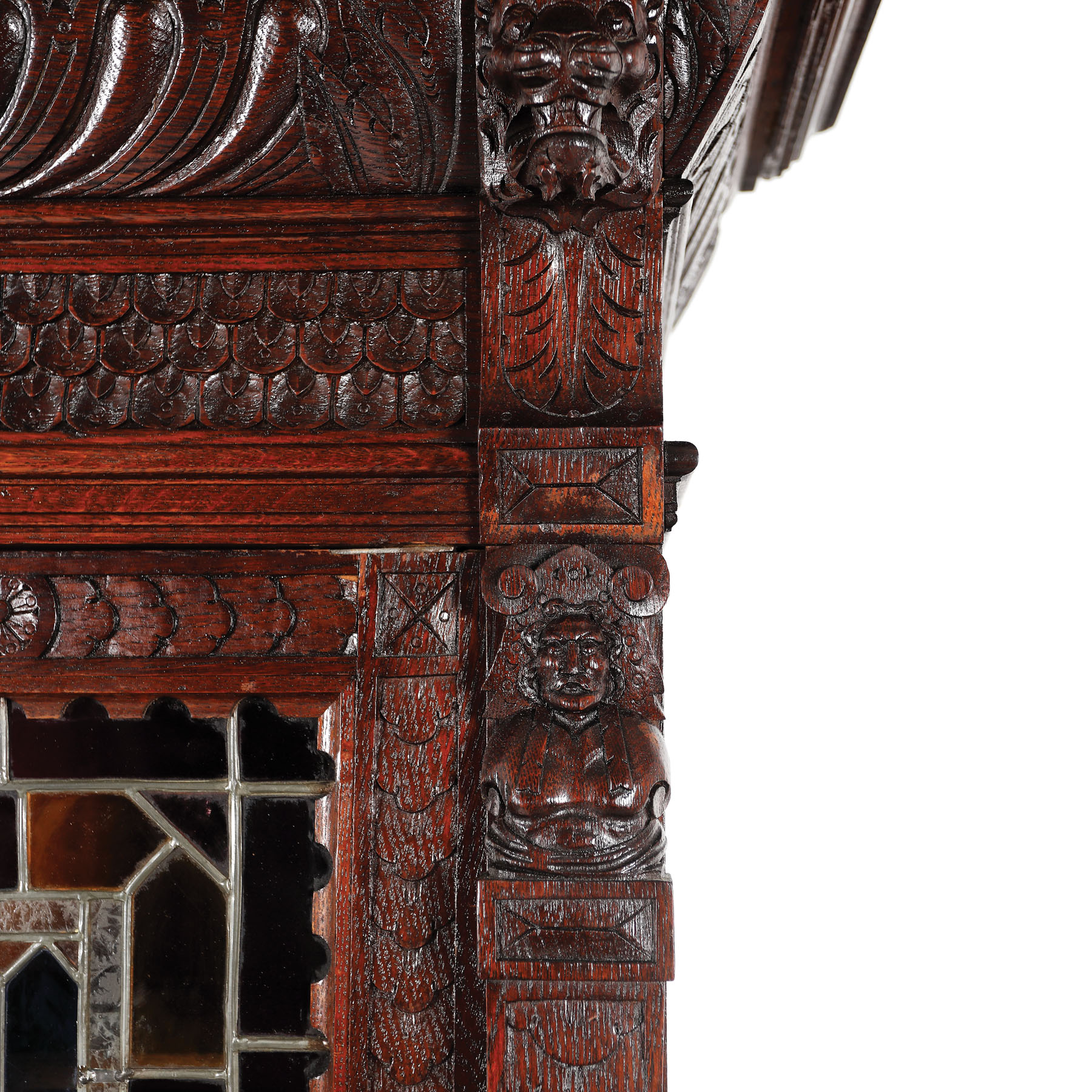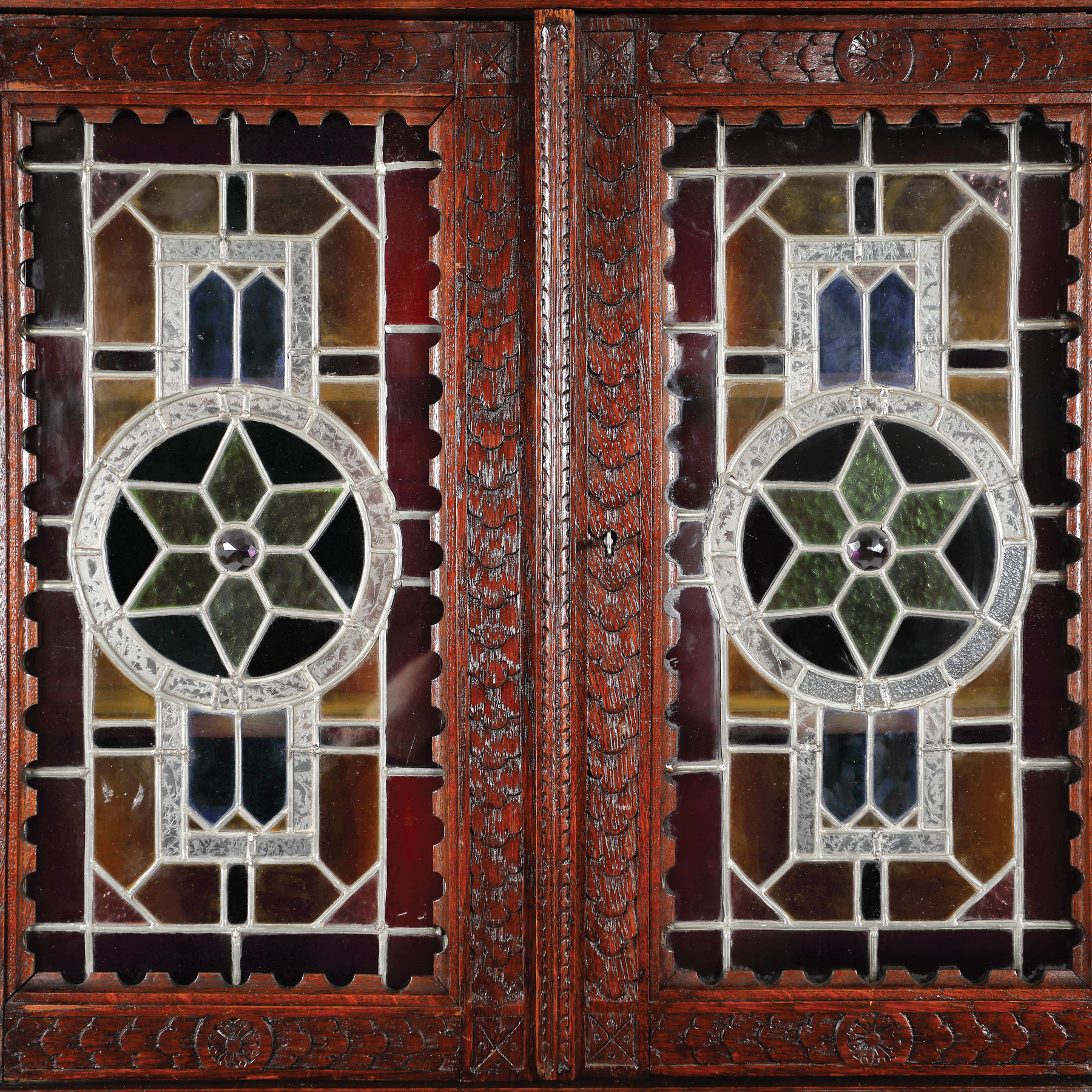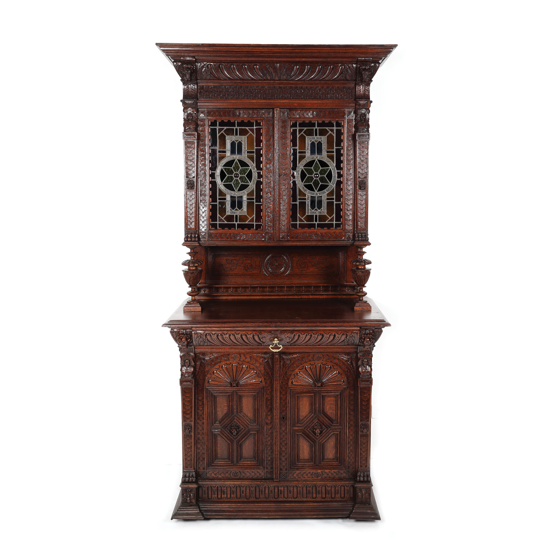 118. Credenza Historistă cu vitralii, din lemn masiv de gorun [Sec. XX]