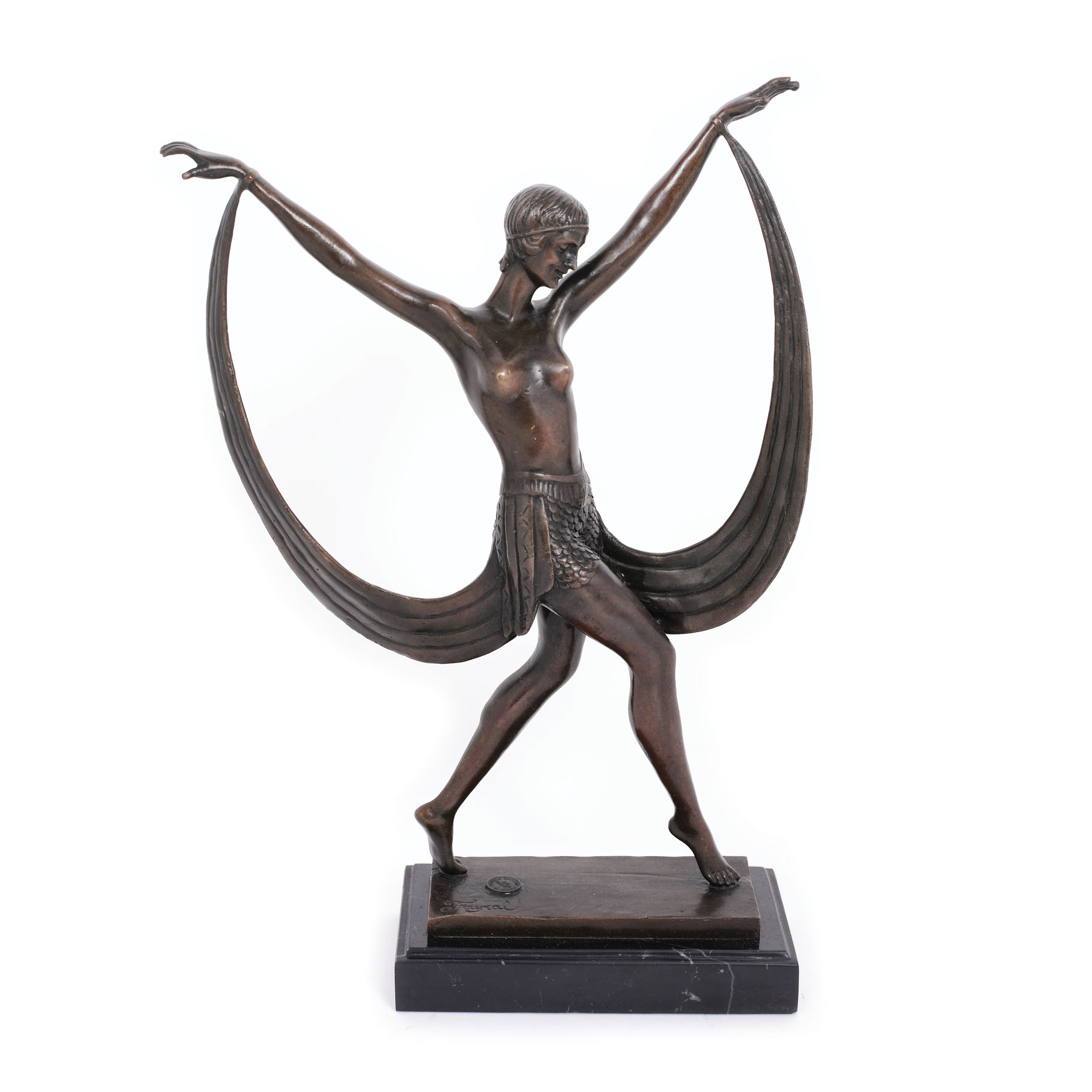 semnat la bază, "Fayral"; la bază, ştampila turnătoriei, "J.B. Deposee, Bronze Garanti, Paris"