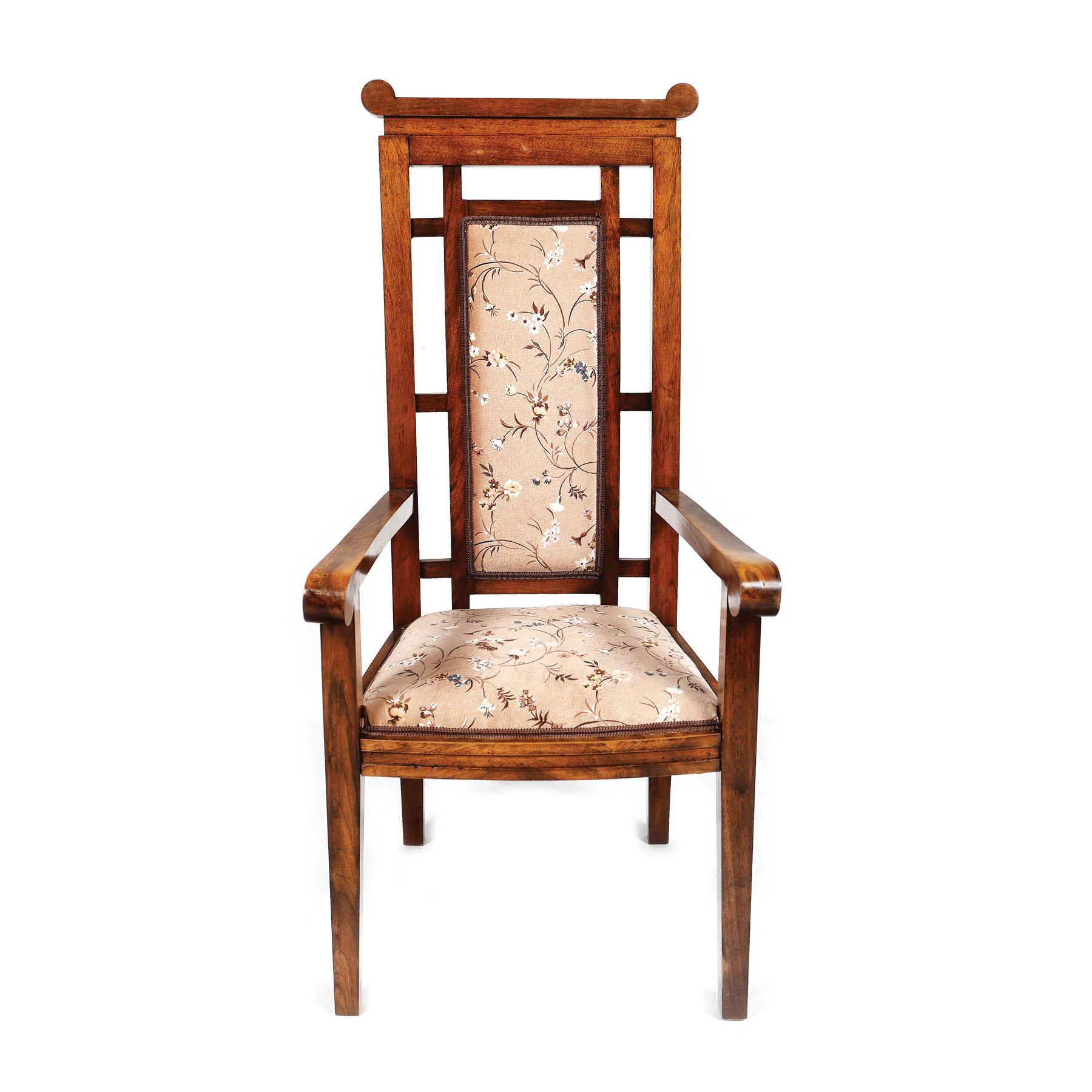 Fotoliu monumental în stil Art Nouveau, cu contururi drepte, minimaliste, de inspirație extrem-orientală.