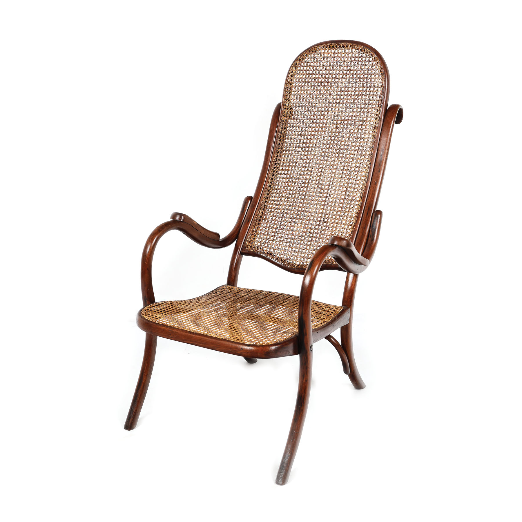143. Fotoliu Thonet, în stil Sezession, cu împletitură de pai de orez, începutul sec. XX