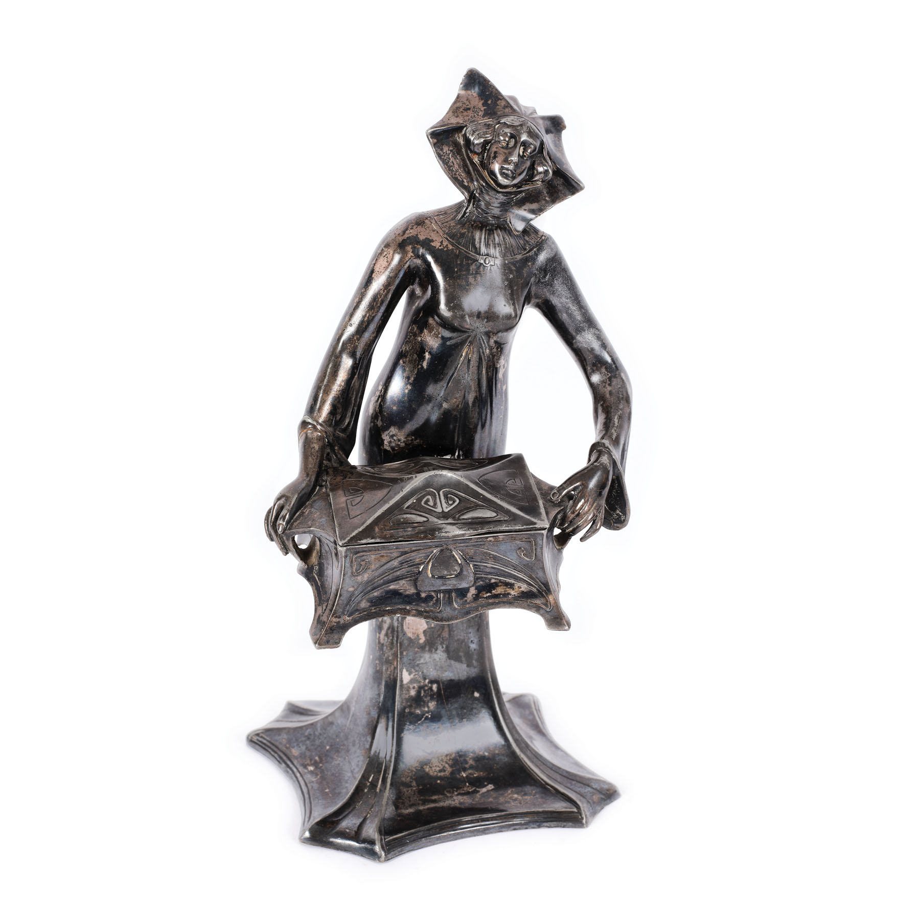 109. Interesant suport WMF în stil Art Nouveau, decorat cu o figură feminină