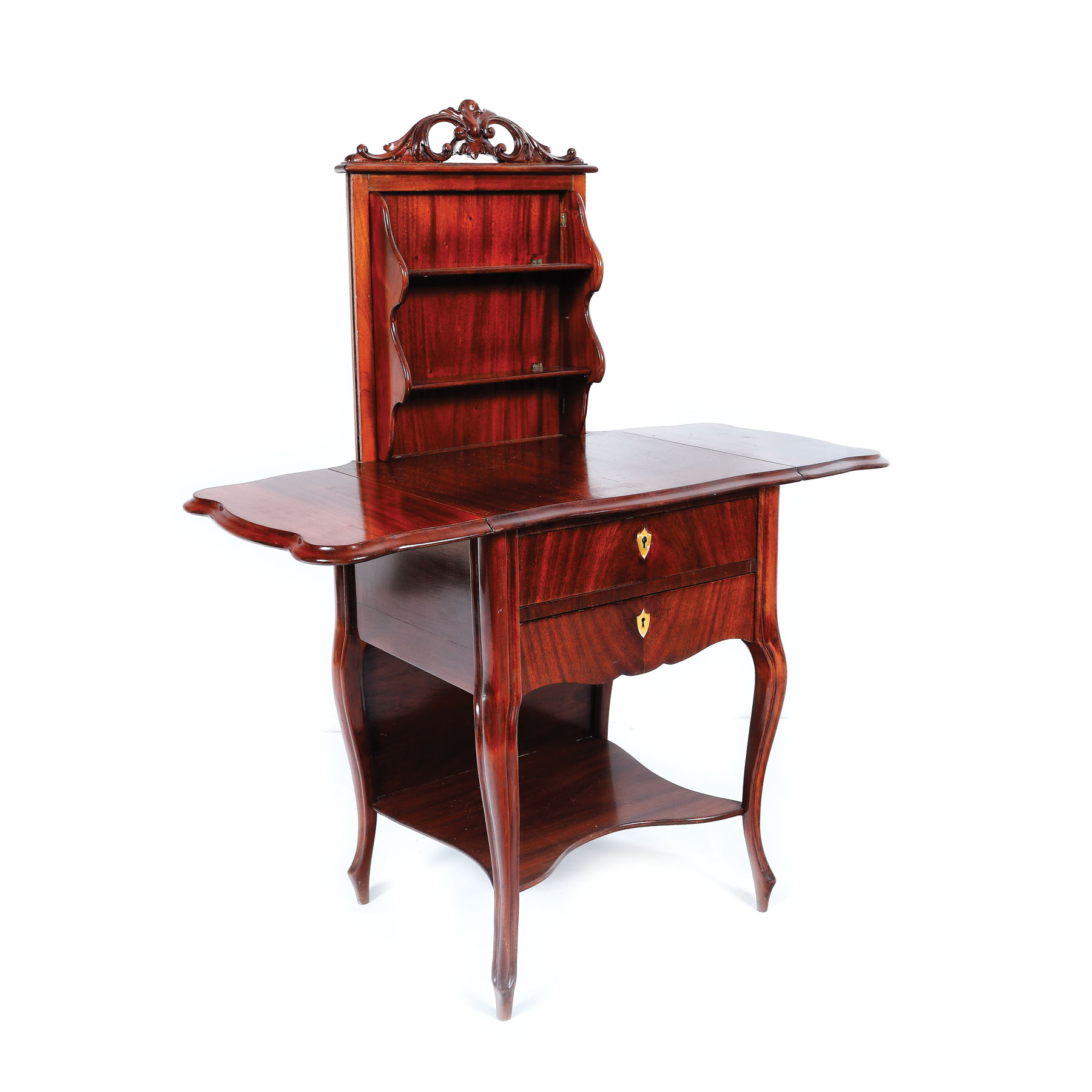 167. Interesantă masă de lucru cu etajeră Louis Phillippe, din lemn de mahon [Sec. XX]