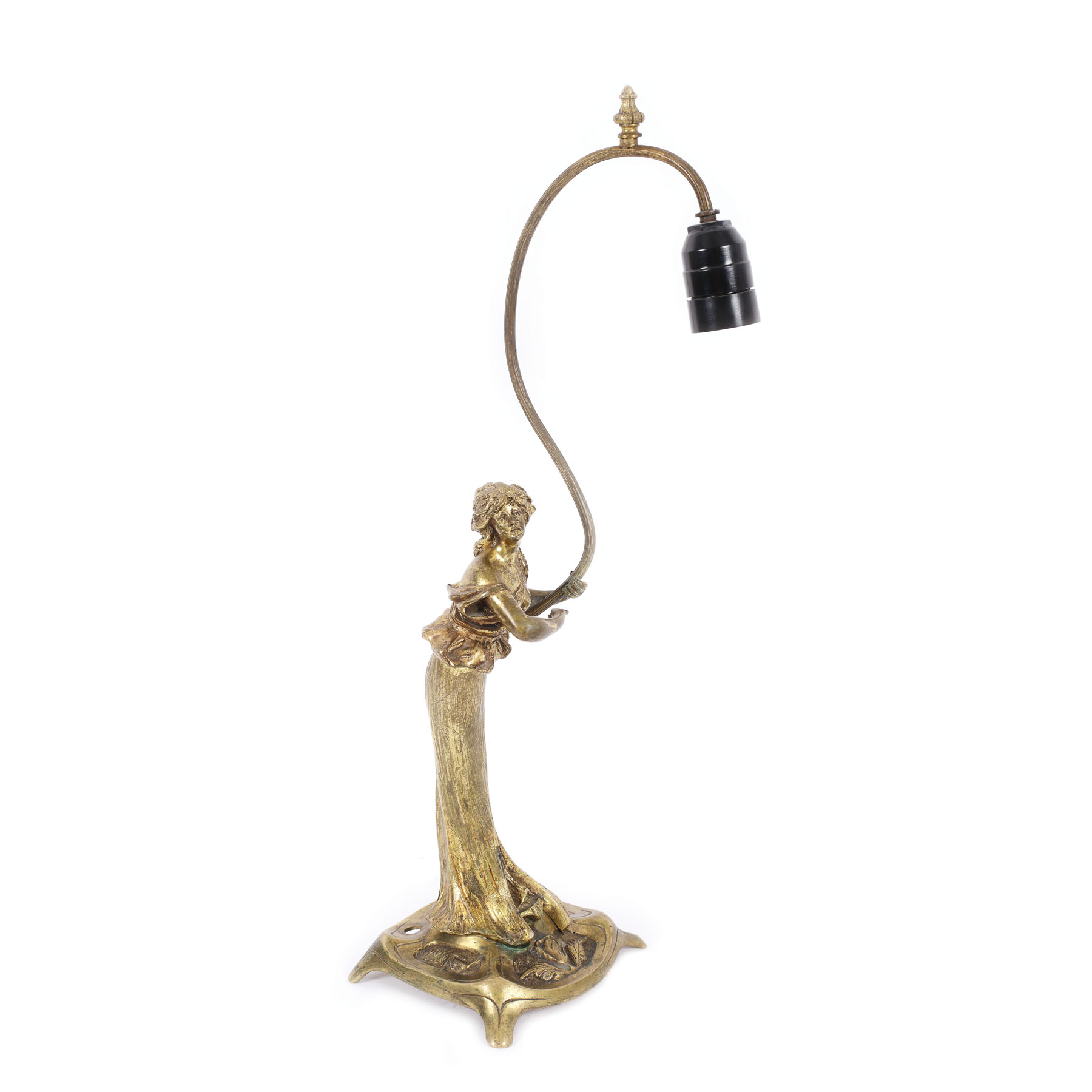 262. Lampă Art Nouveau, din bronz, decorată cu figură feminină, cca. 1930