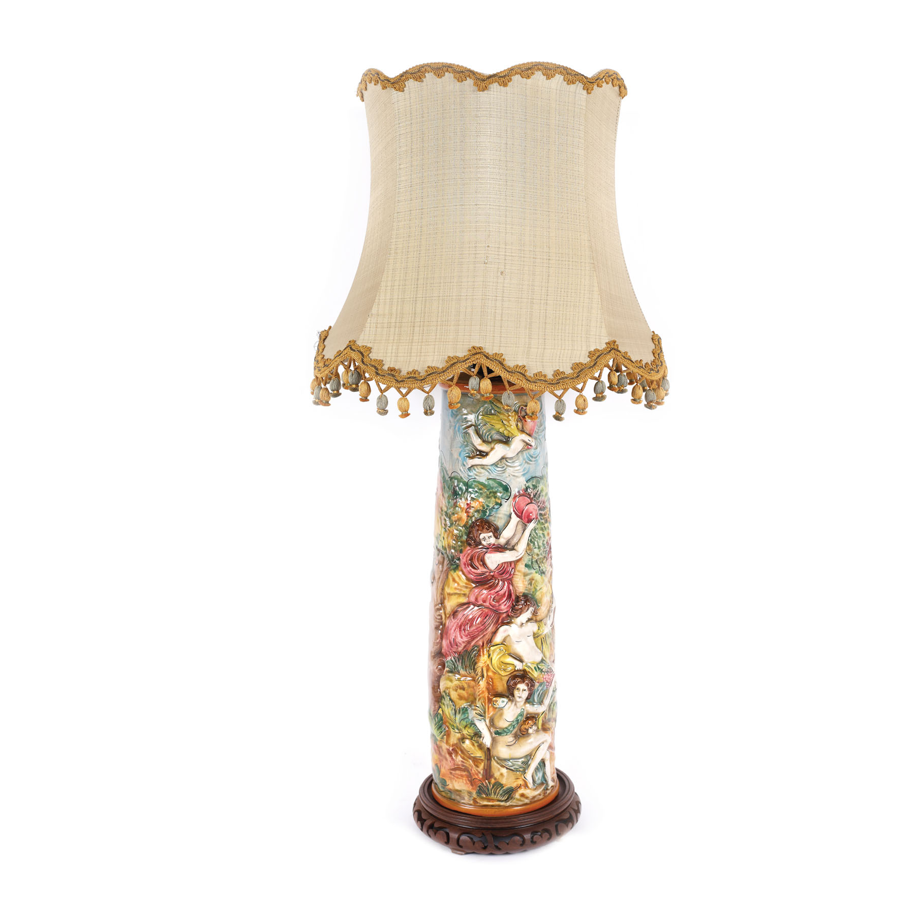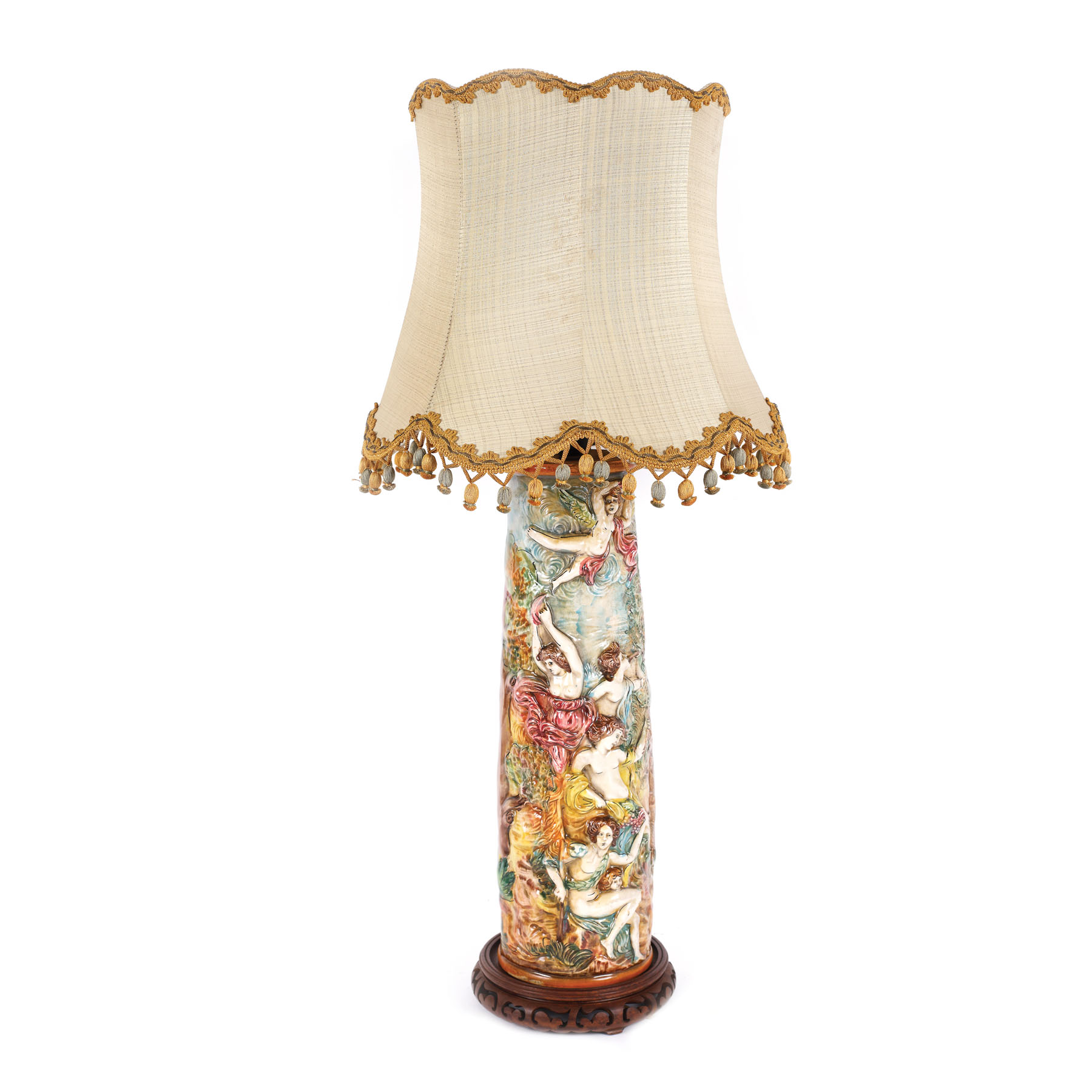197. Lampă cu suport din porțelan Capodimonte, decorat cu scenă alegorică [Sec. XX]