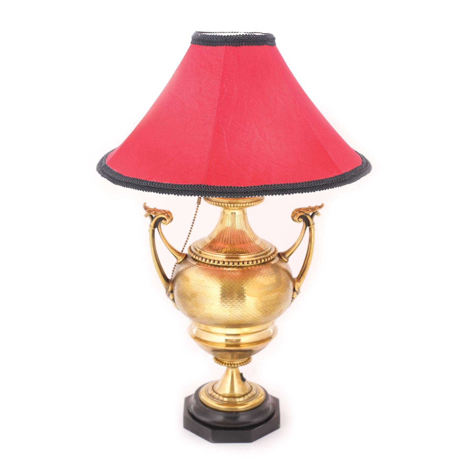 199. Lampă în manieră Neo-Clasică, din bronz doré gravat și decorat în tehnica guilloche, cca. 1880