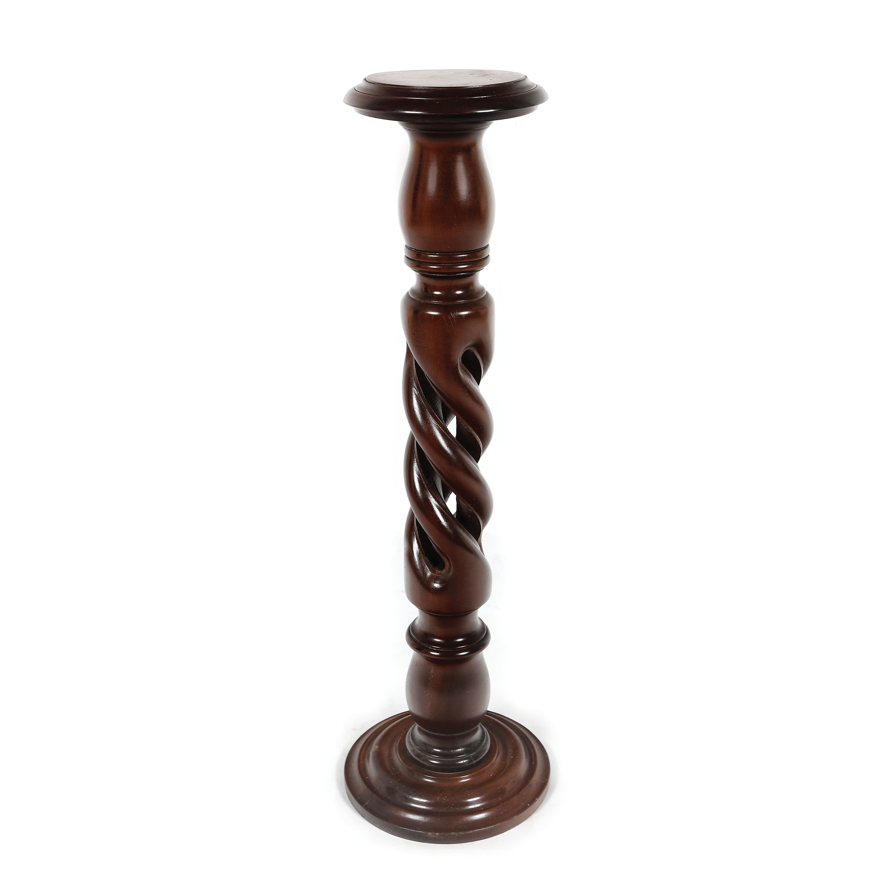 Piedestal cu bază circulară profilată, picior balustru torsadat și platan circular.