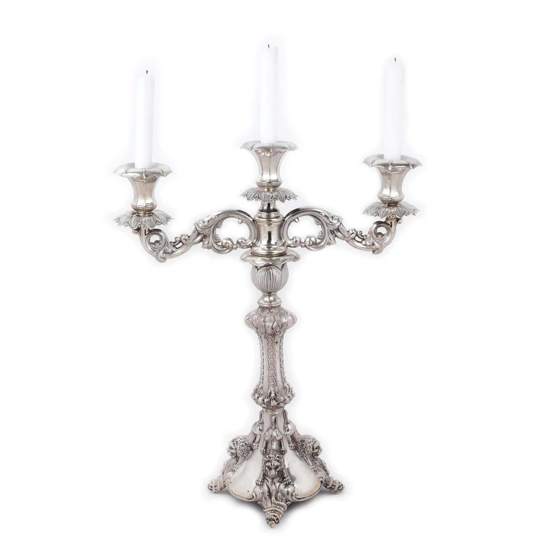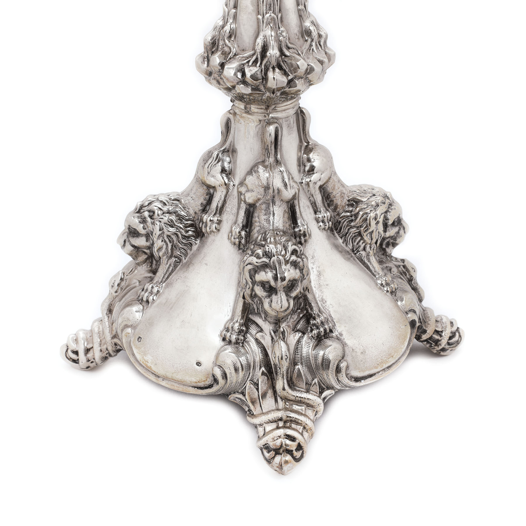 222. Sfeșnic din argint, ornat cu protome de leu, cca. 1870