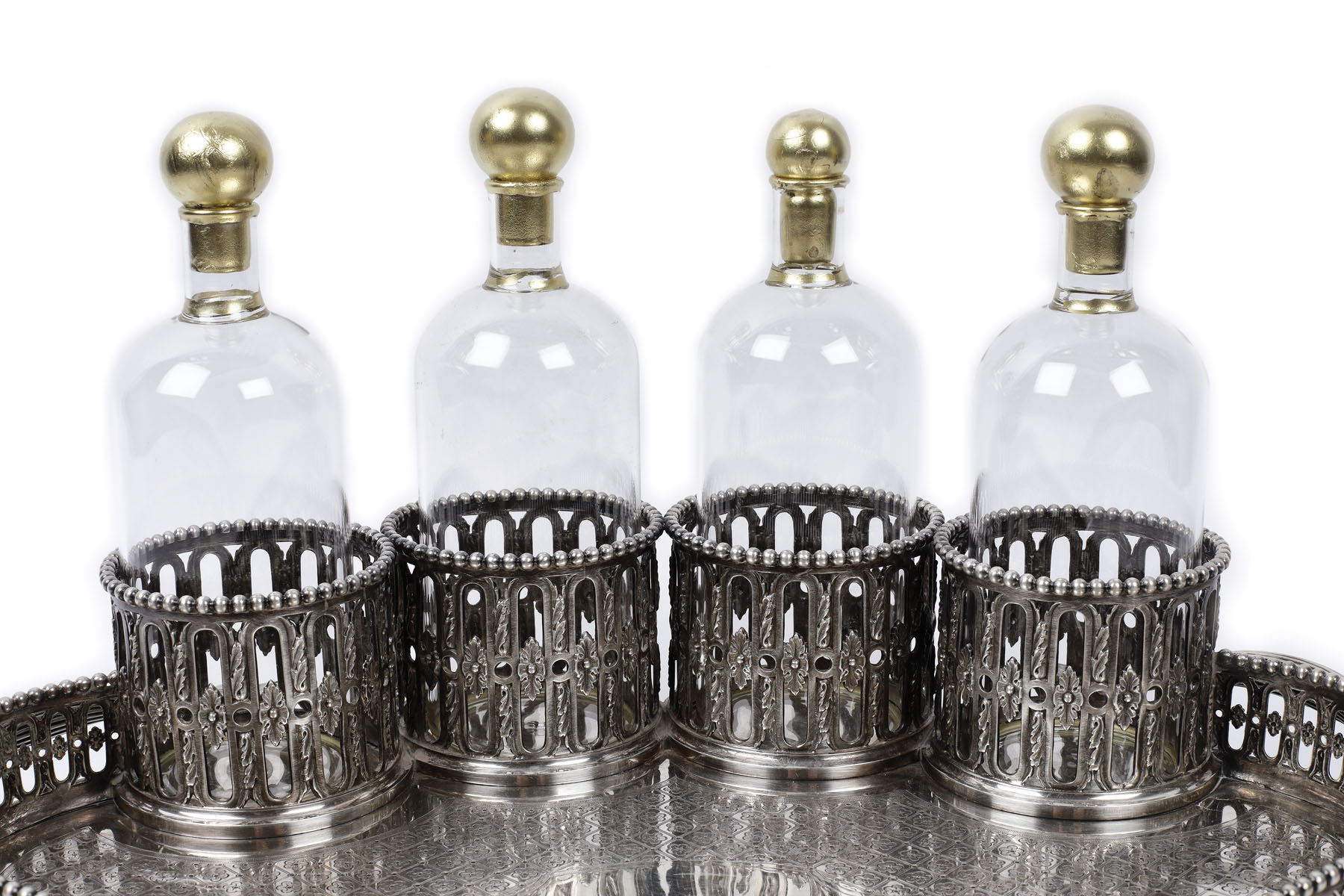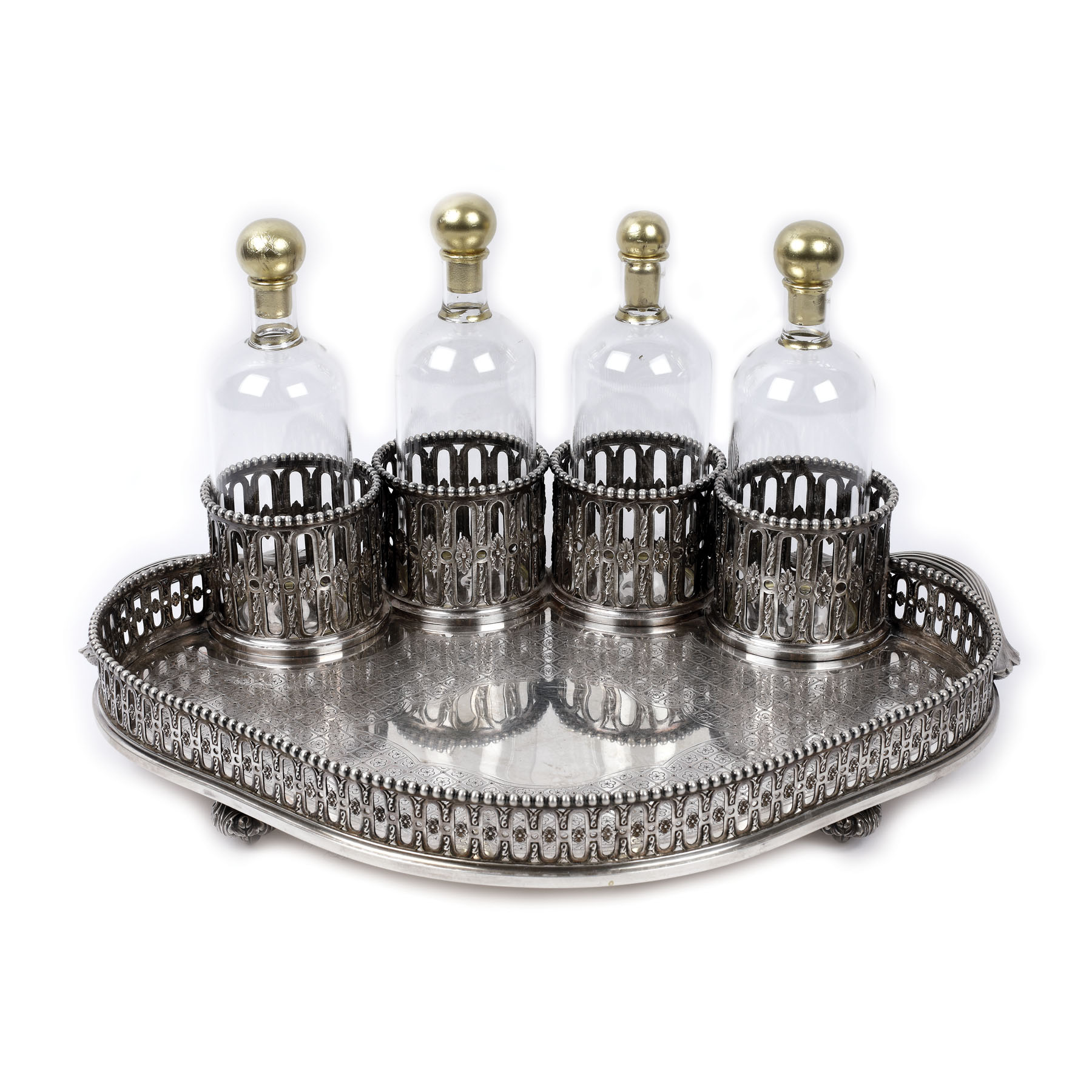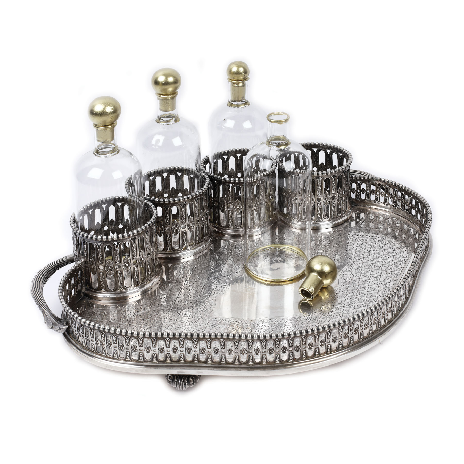 185. Tavă cu suporturi din argint Odiot, pentru sticle și pahare, cca. 1870