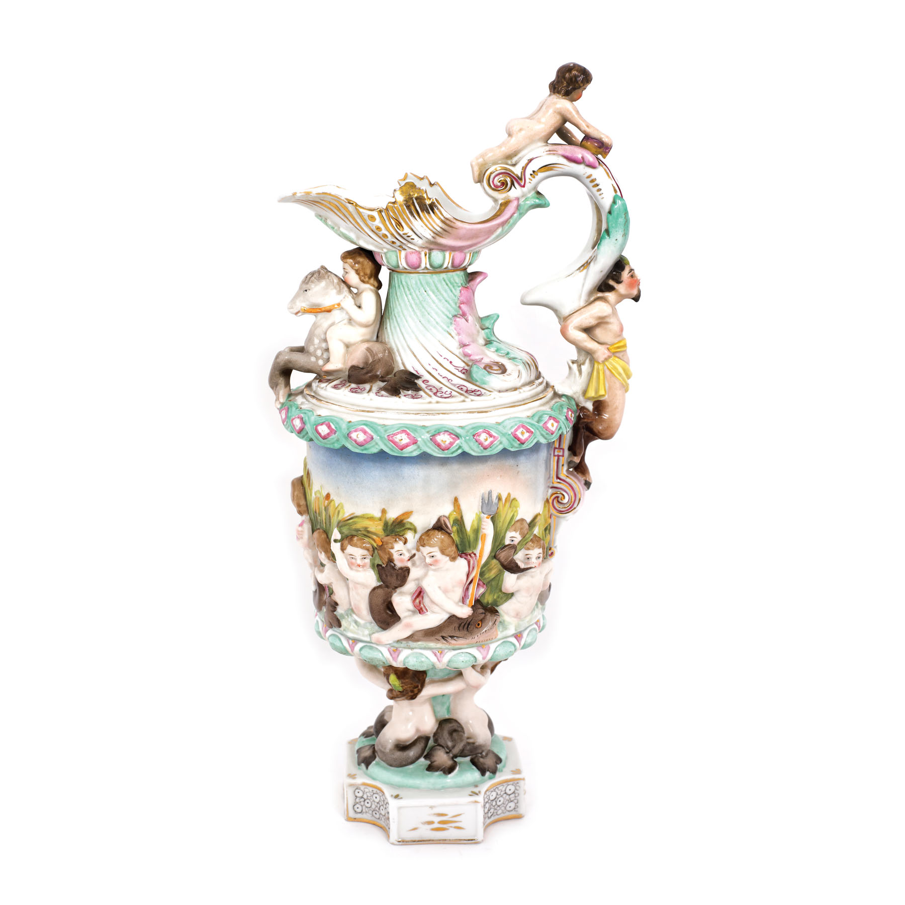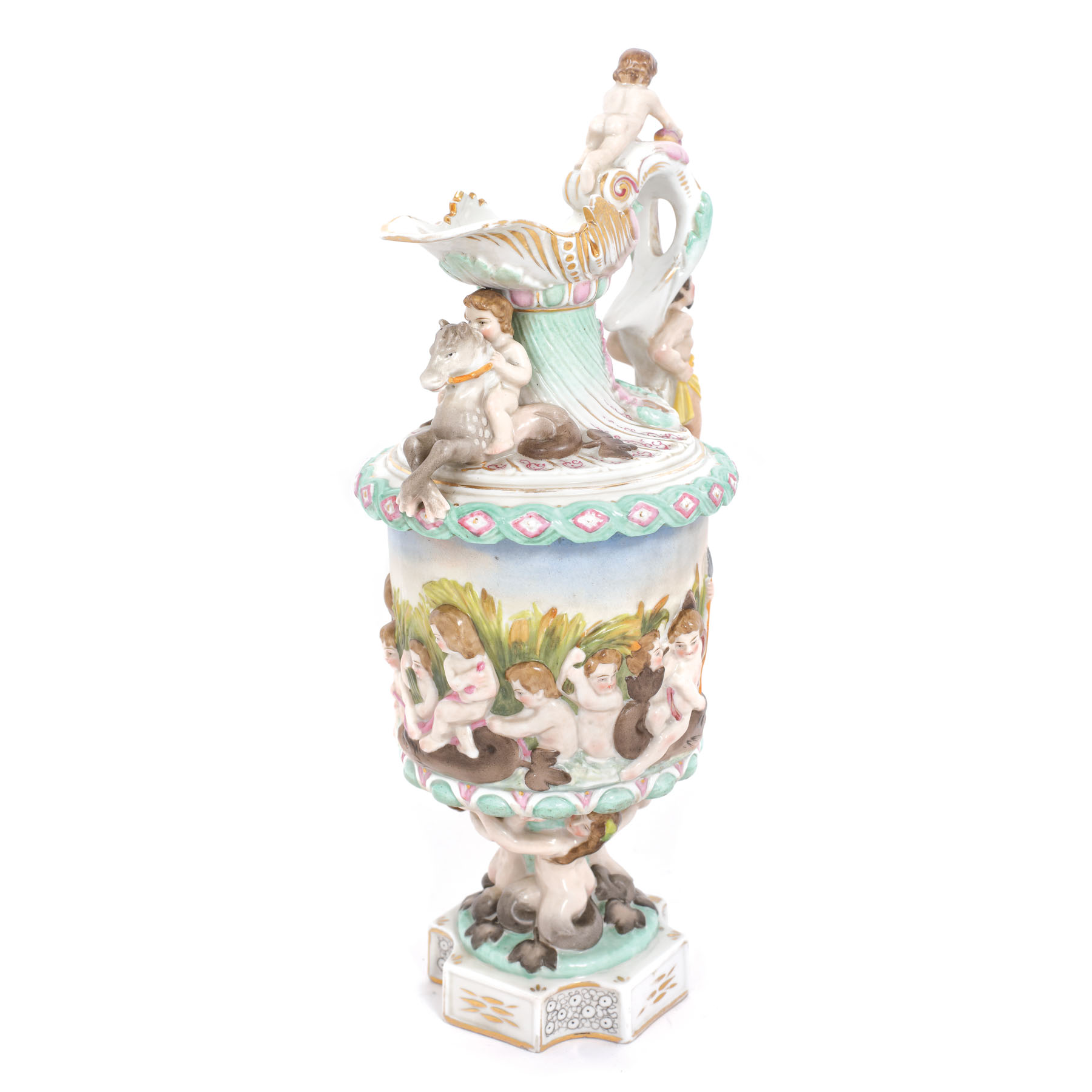 196. Vas din porțelan Capodimonte, bogat decorat cu putti și elemente vegetale stilizate, prima jumătate a sec. XX