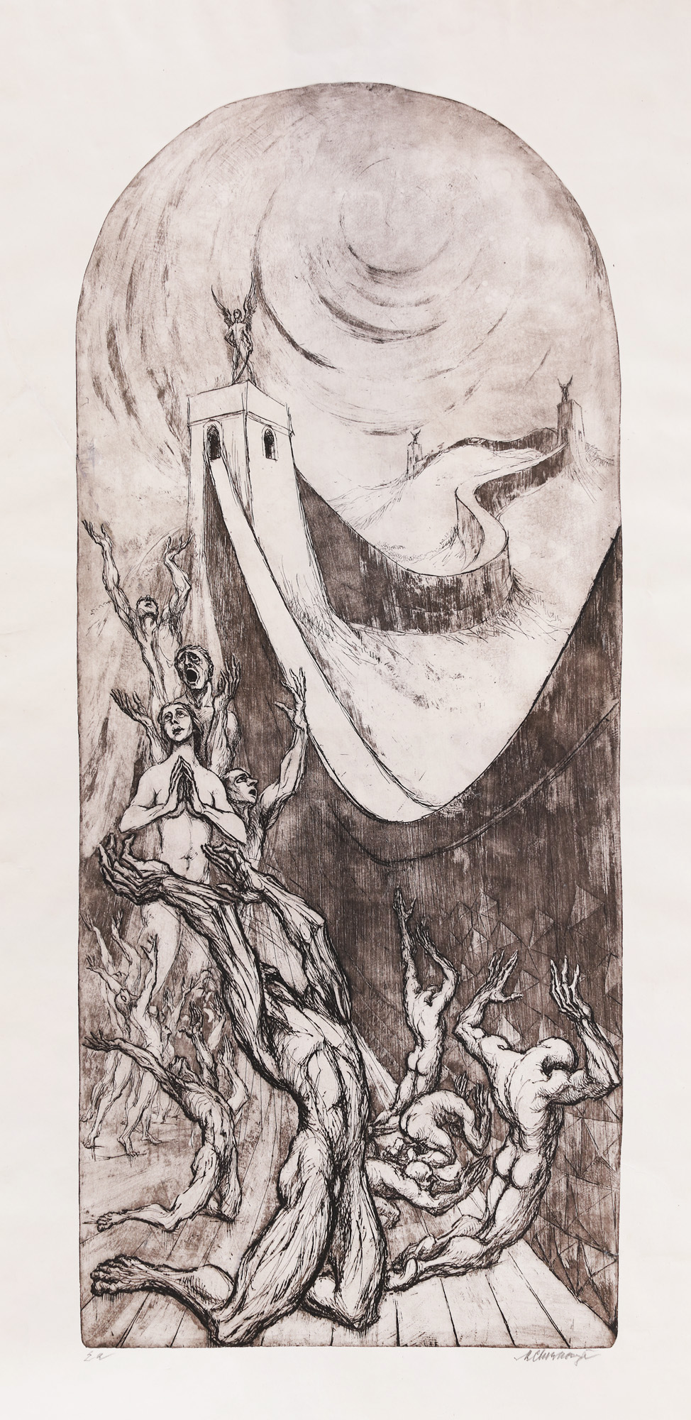 semnat dreapta jos, în creion, sub cadru, "M. Chinoagă"; notat stânga jos, în creion, sub cadru, "e.a"