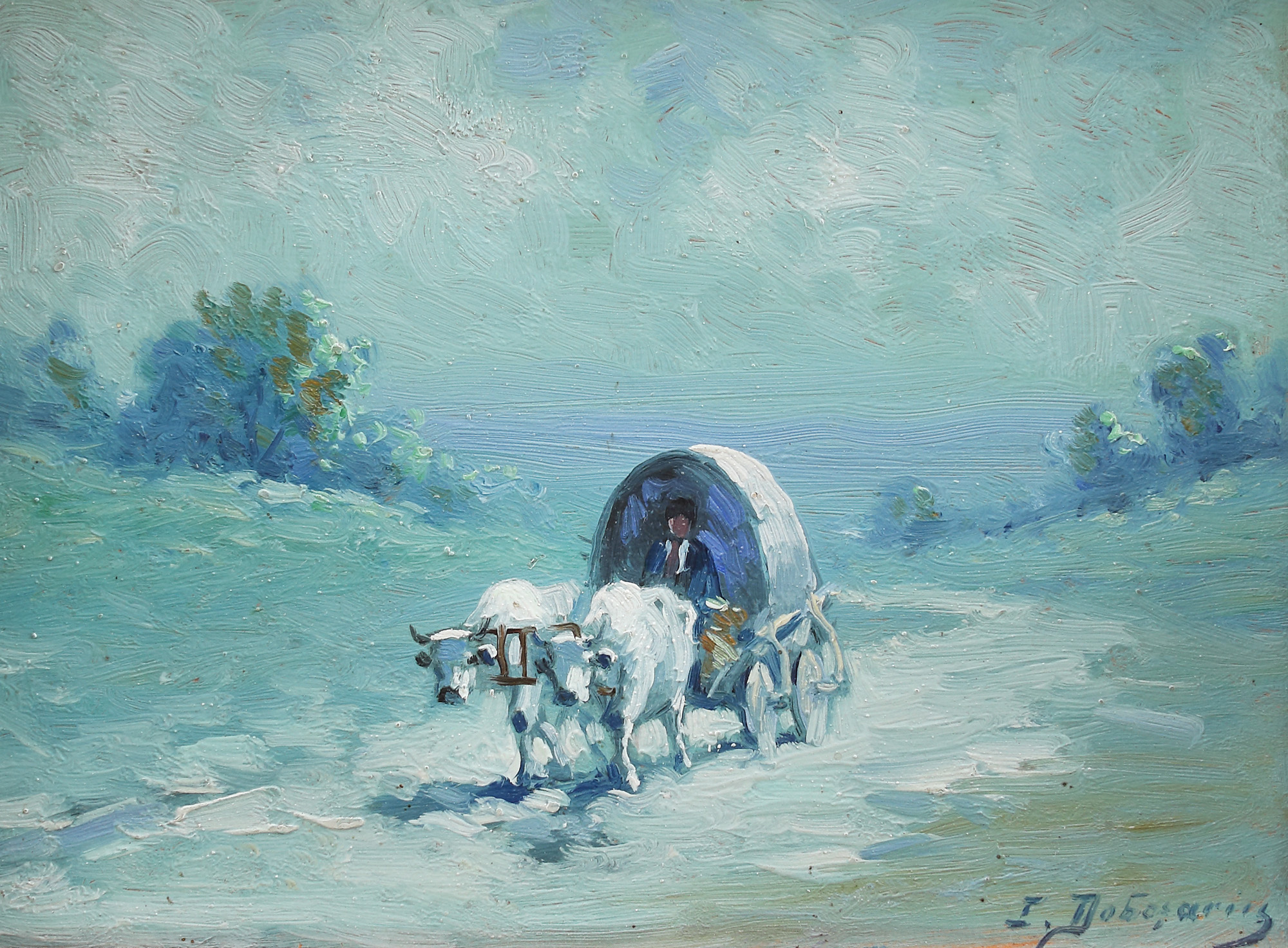 77. Car cu boi pe înserat