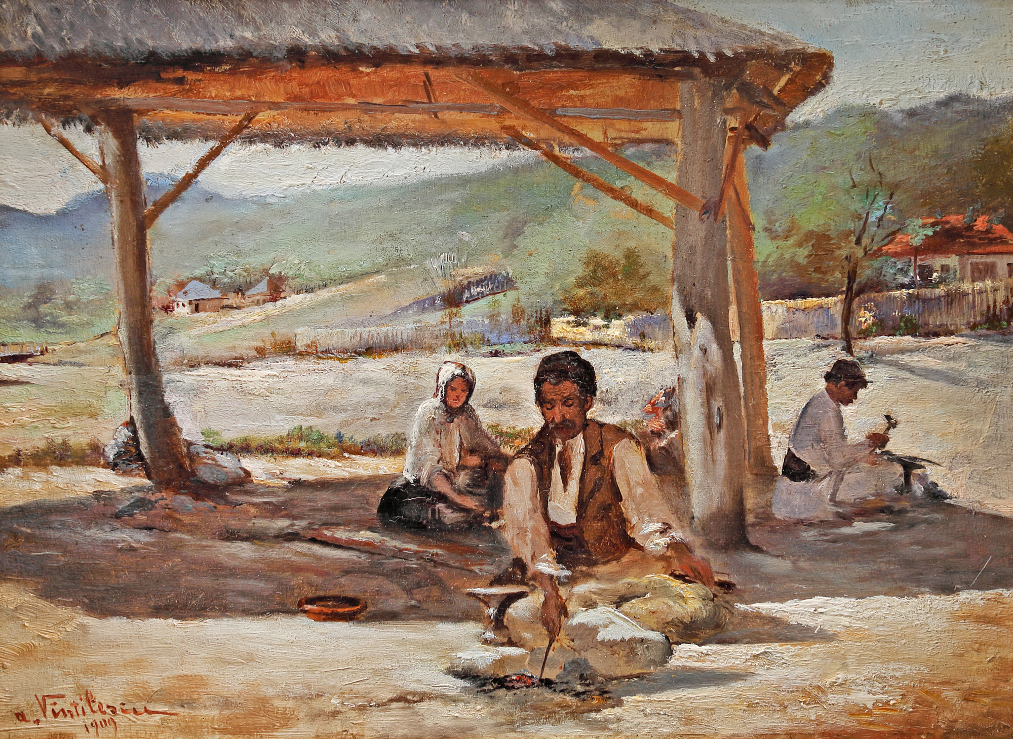 semnat și datat stânga jos, cu roșu, ”a. Vintilescu, 1909”