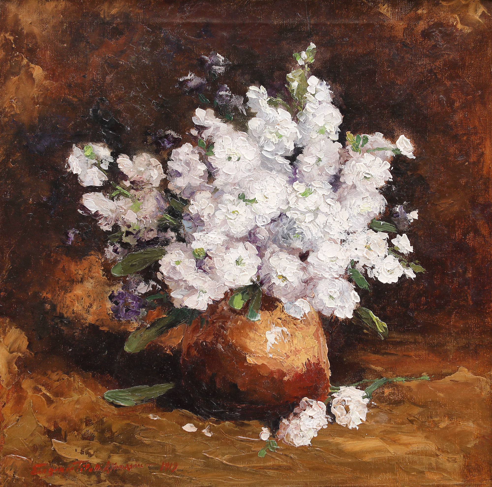 semnat și datat stânga jos, cu brun, "Eugenia Filotti Atanasiu, 1919"