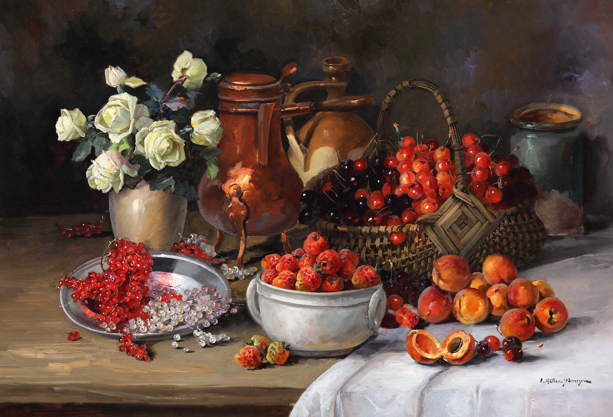 132. Natură statică cu fructe și vas cu trandafiri