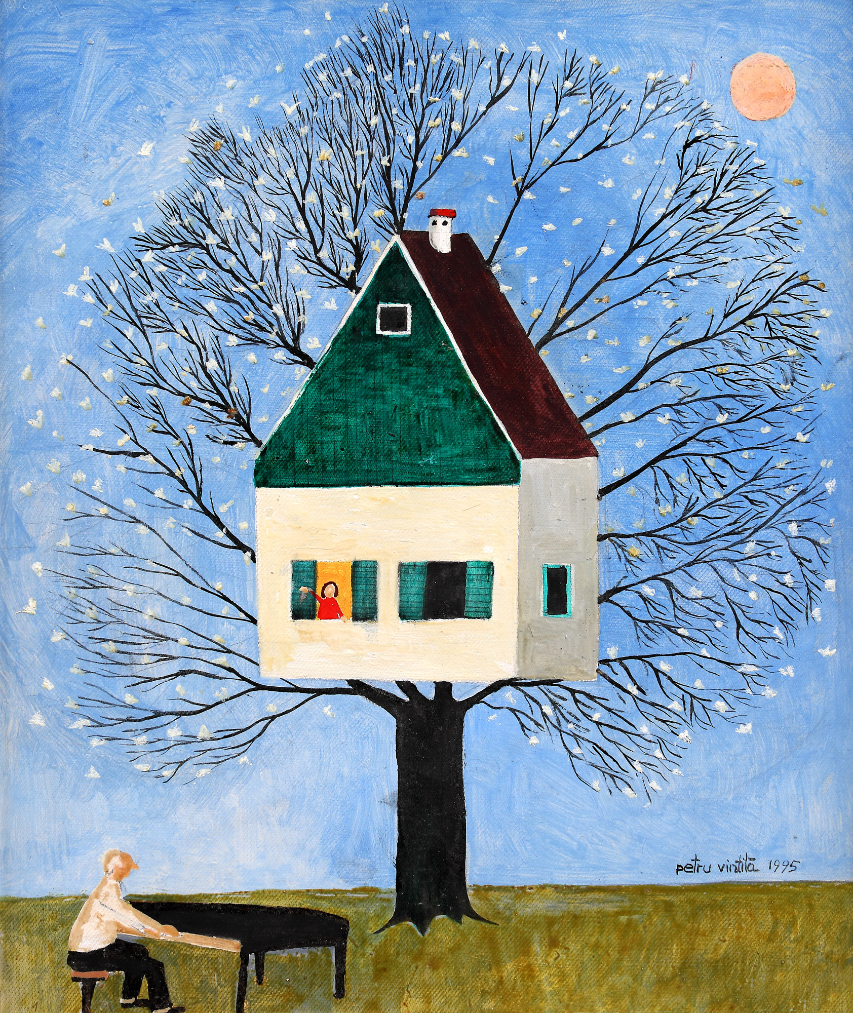 semnat și datat dreapta jos, cu negru, ”petru vintilă, 1995”