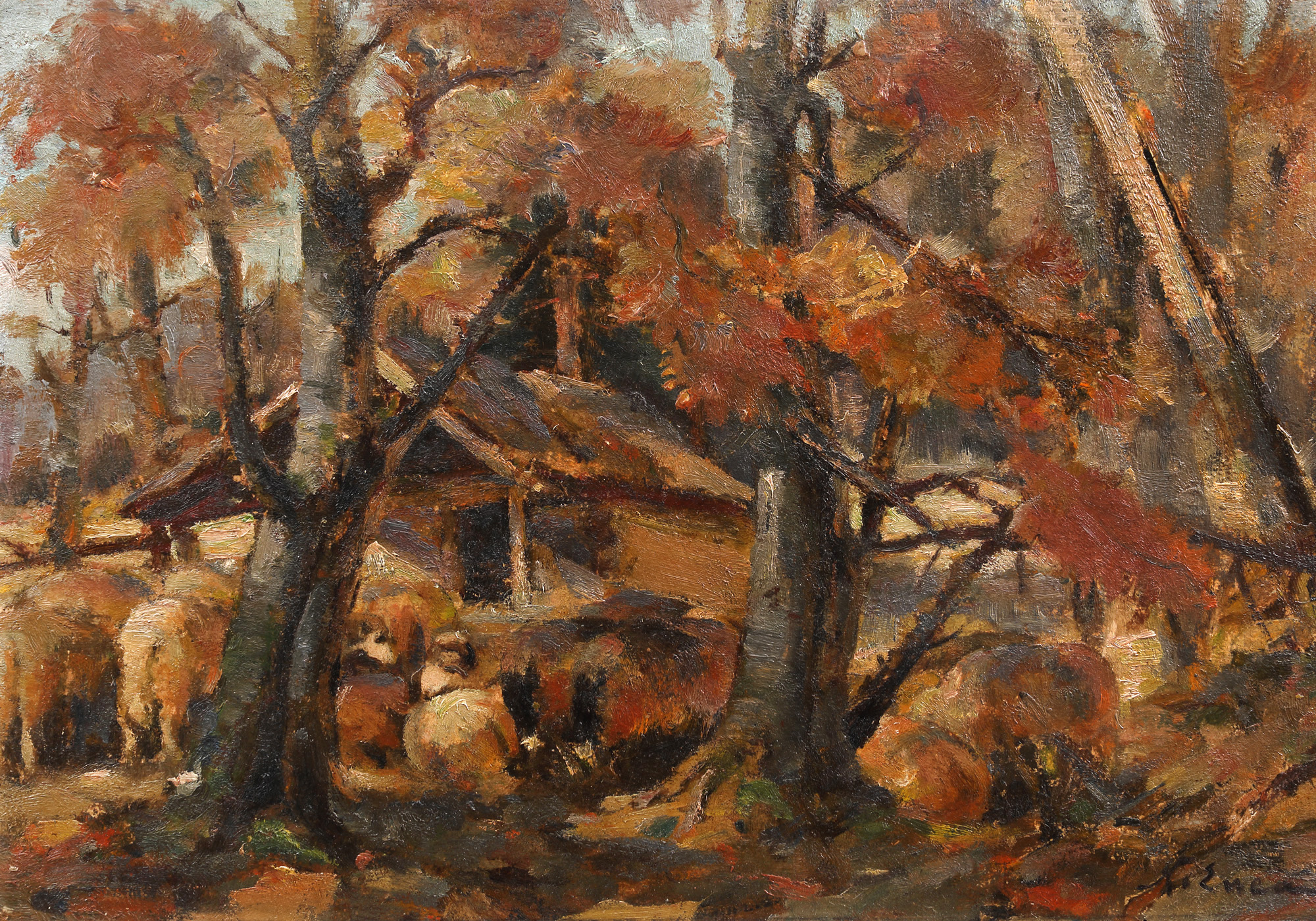 semnat dreapta jos, cu brun, "N. Enea"