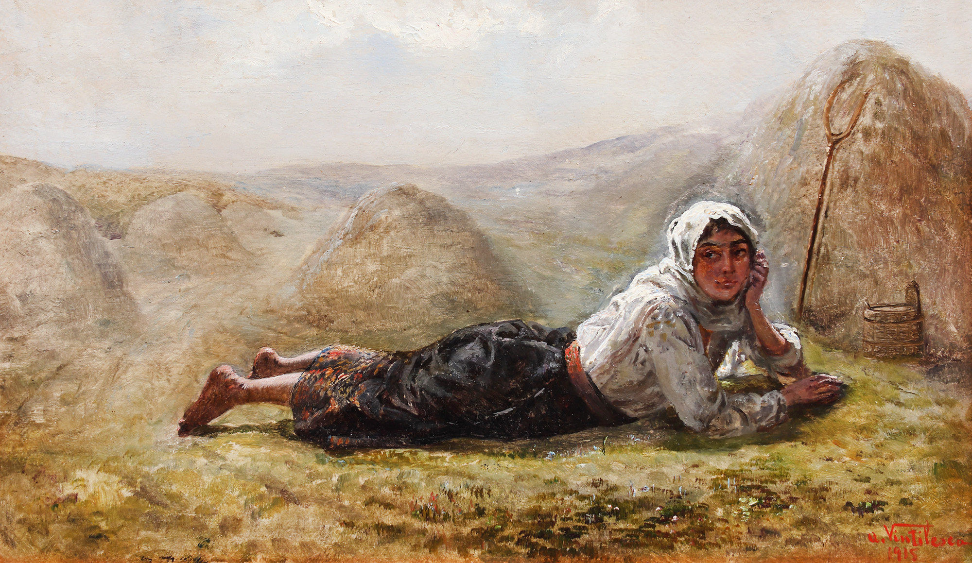 semnat și datat dreapta jos, cu roșu, "a. Vintilescu, 1915"