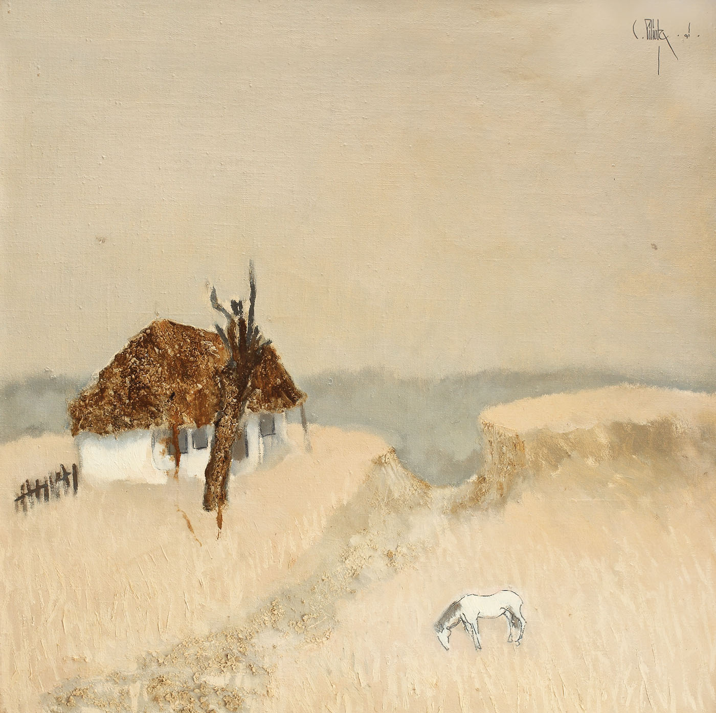 semnat şi datat dreapta sus, cu negru, "C. Piliuţă, (19)91"