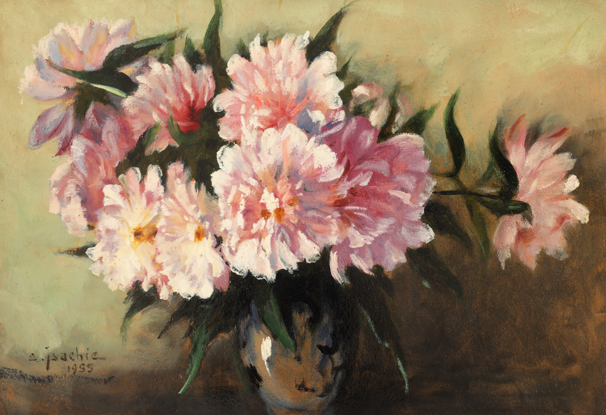 semnat și datat stânga jos, cu negru, ”C. Isachie, 1955”