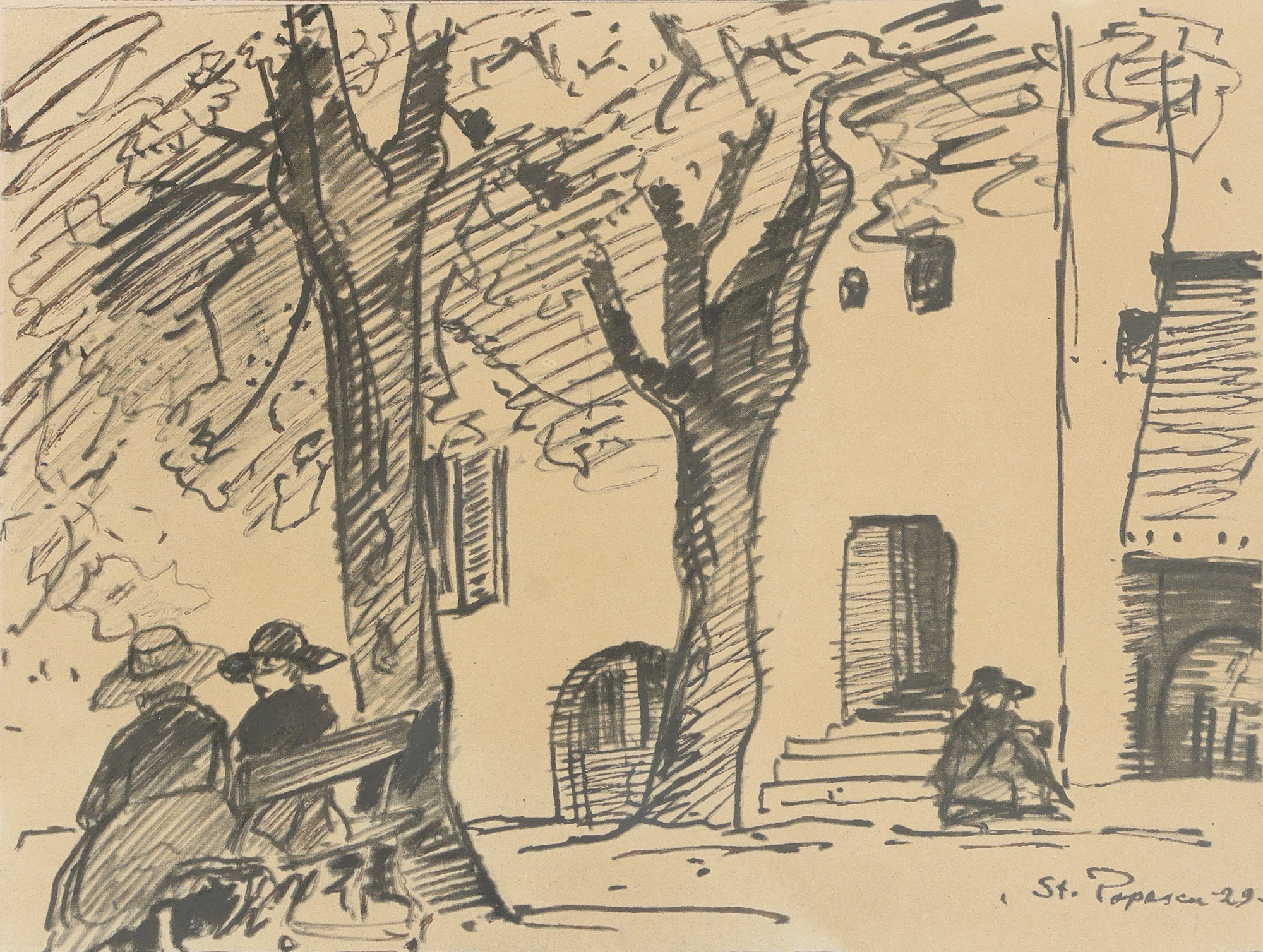 semnat și datat dreapta jos, cu tuș, ”Șt. Popescu, (19)29”