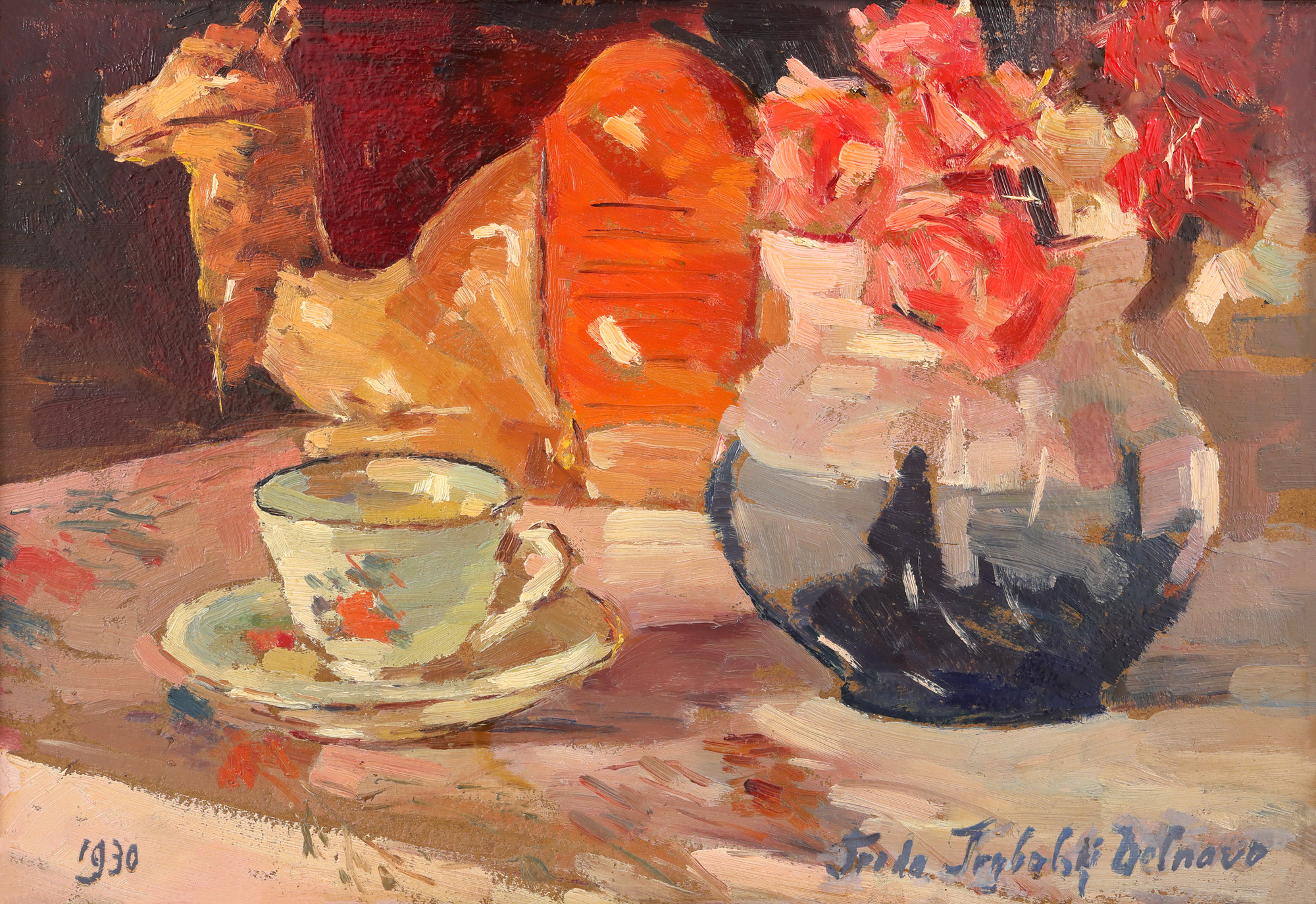 semnat dreapta jos, cu albastru, ”Freda Trybalski Delnevo”; datat stânga jos, cu albastru, ”1930”