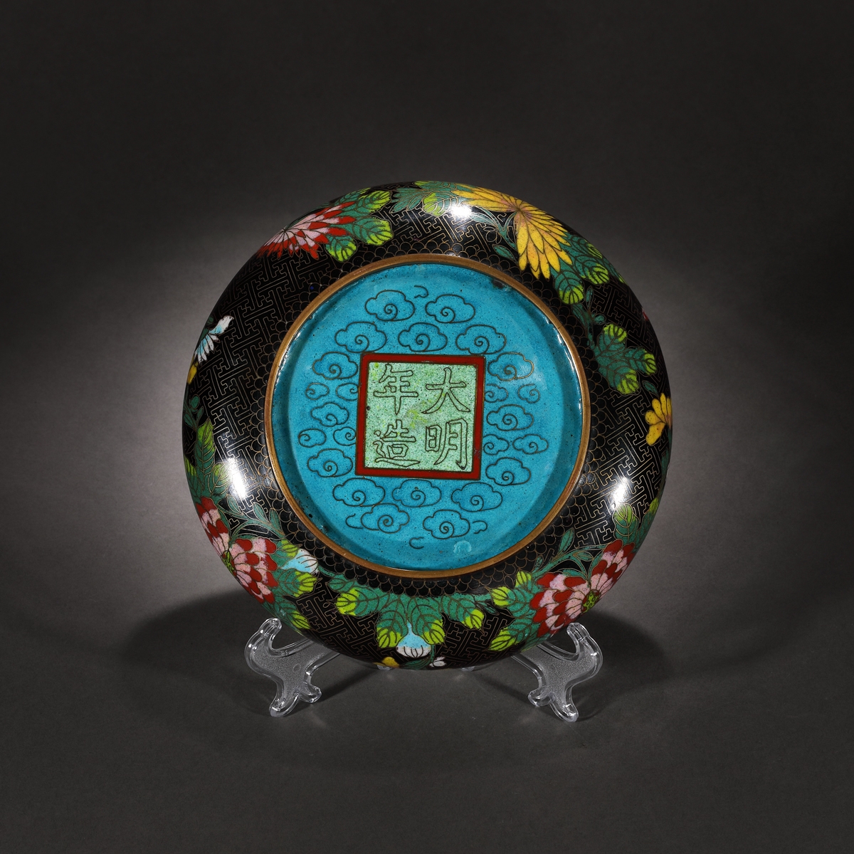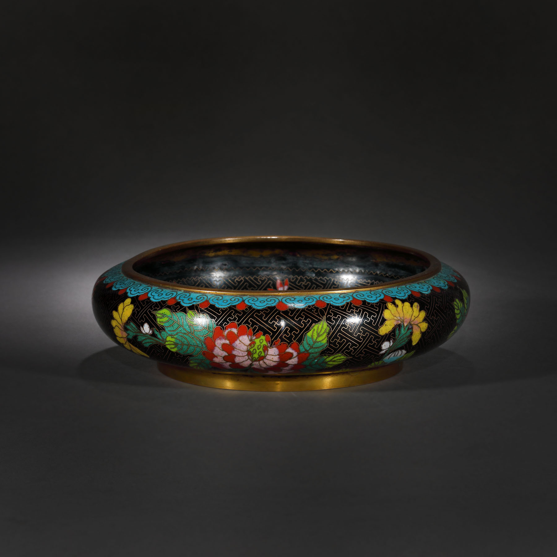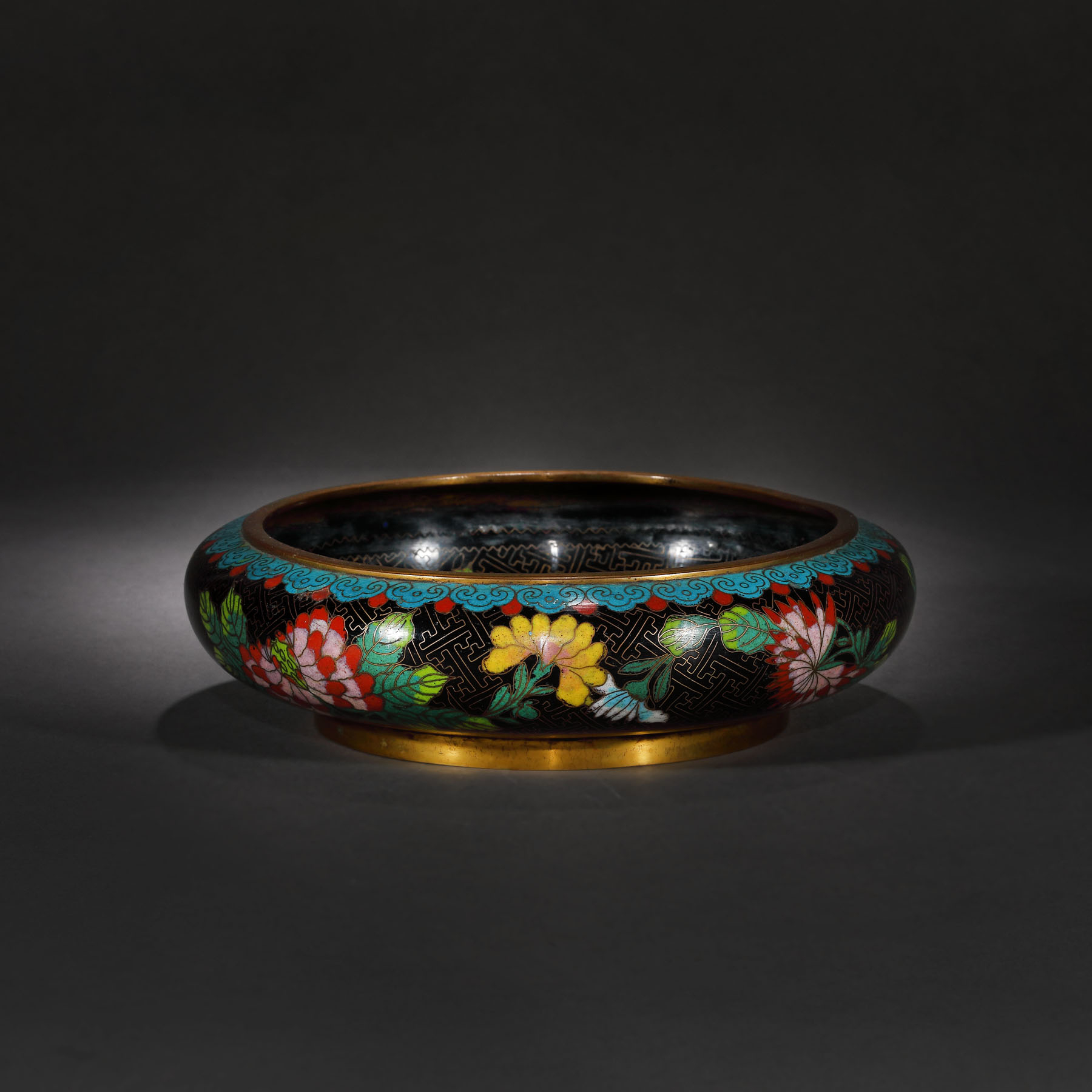 144. Bol din bronz, decorat cu motive florale, în tehnică cloisonné, purtând marca retrospectivă a dinastiei Ming, perioada Jiaqing, China, cca. 1796-1820
